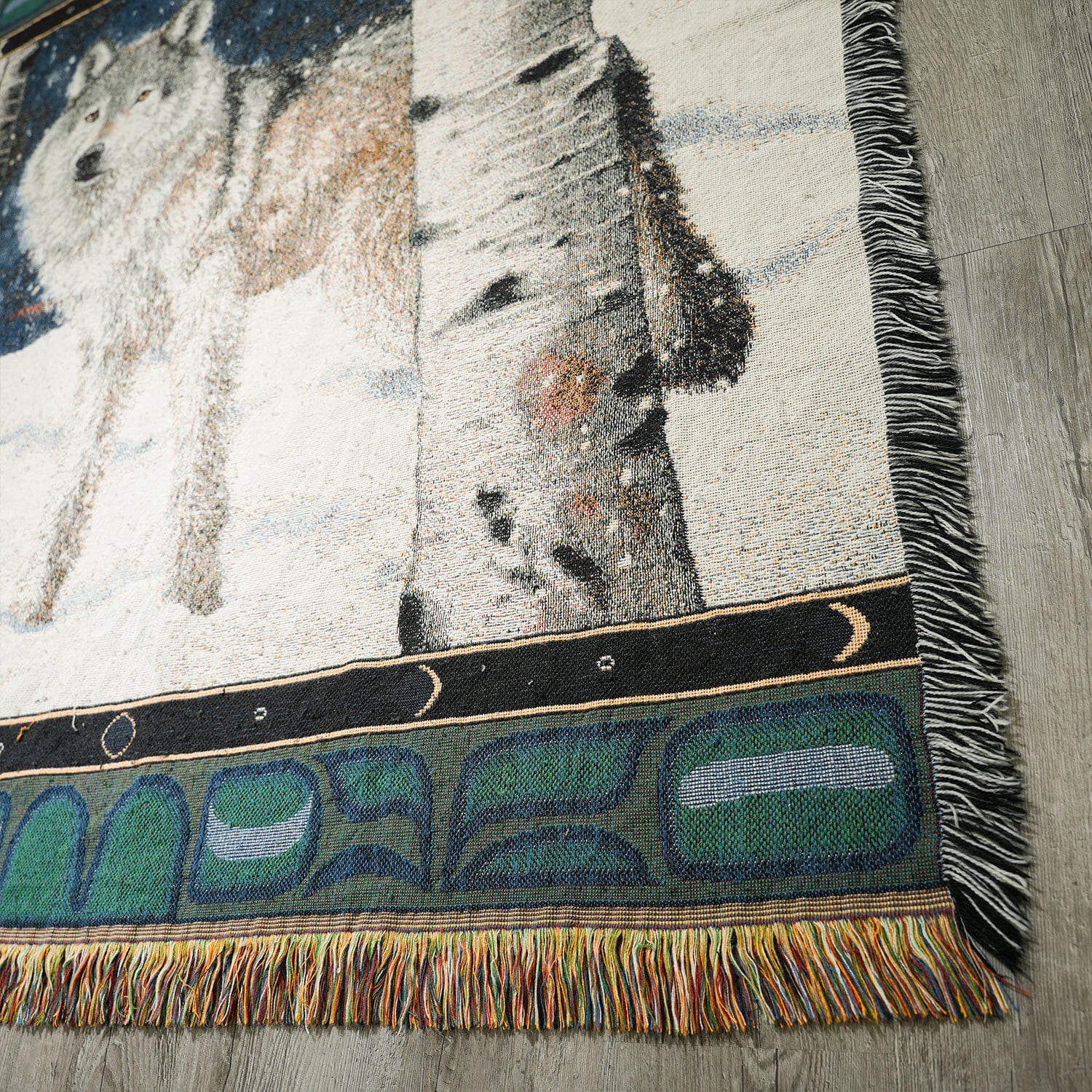 ヴィンテージ ラグ ウルフ 狼 スノーフォレスト タペストリー ソファーカバー 絨毯 アメリカンインテリア