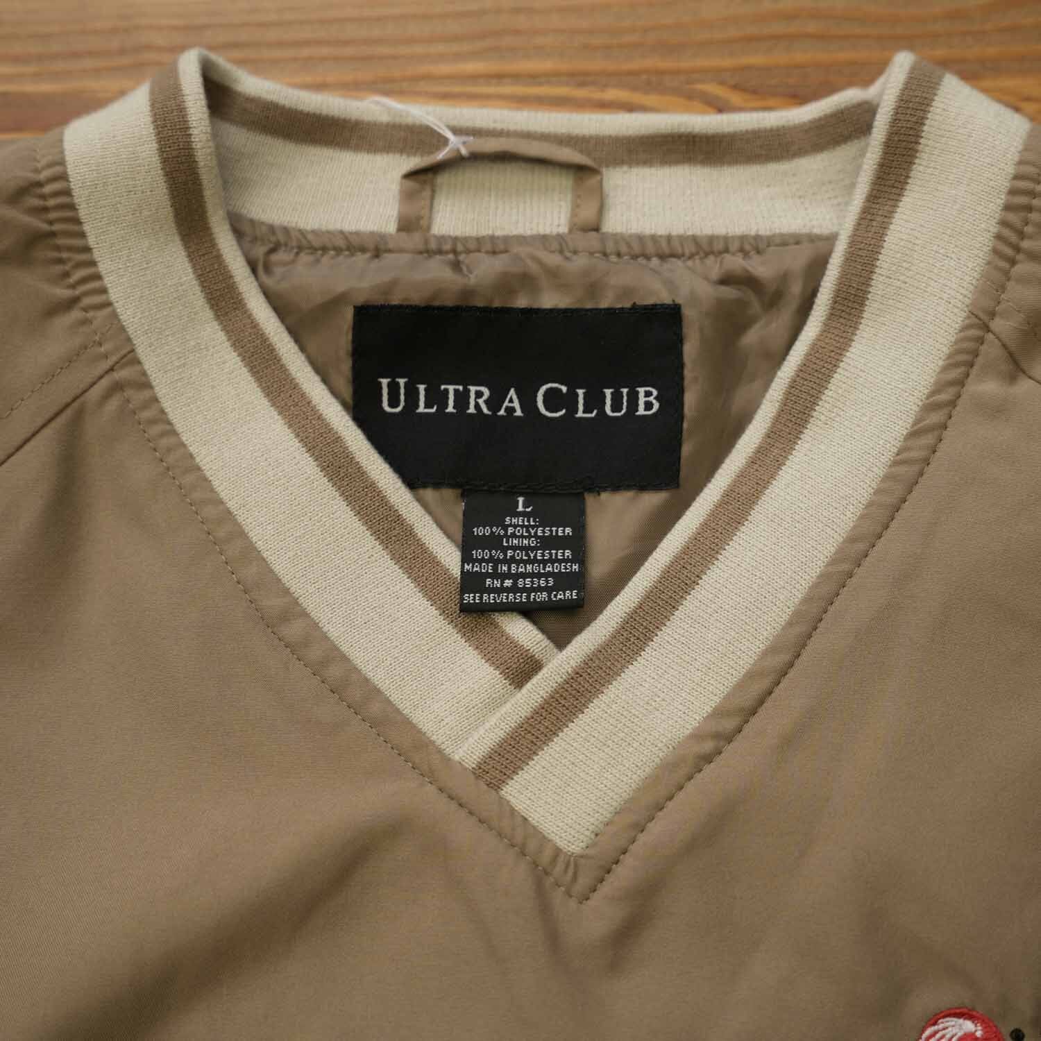 ULTRA CLUB × LexisNexis 刺繍ロゴ プルオーバートップス ベージュ Lサイズ 00s ポリエステルライトアウター 古着【furugi-1770】