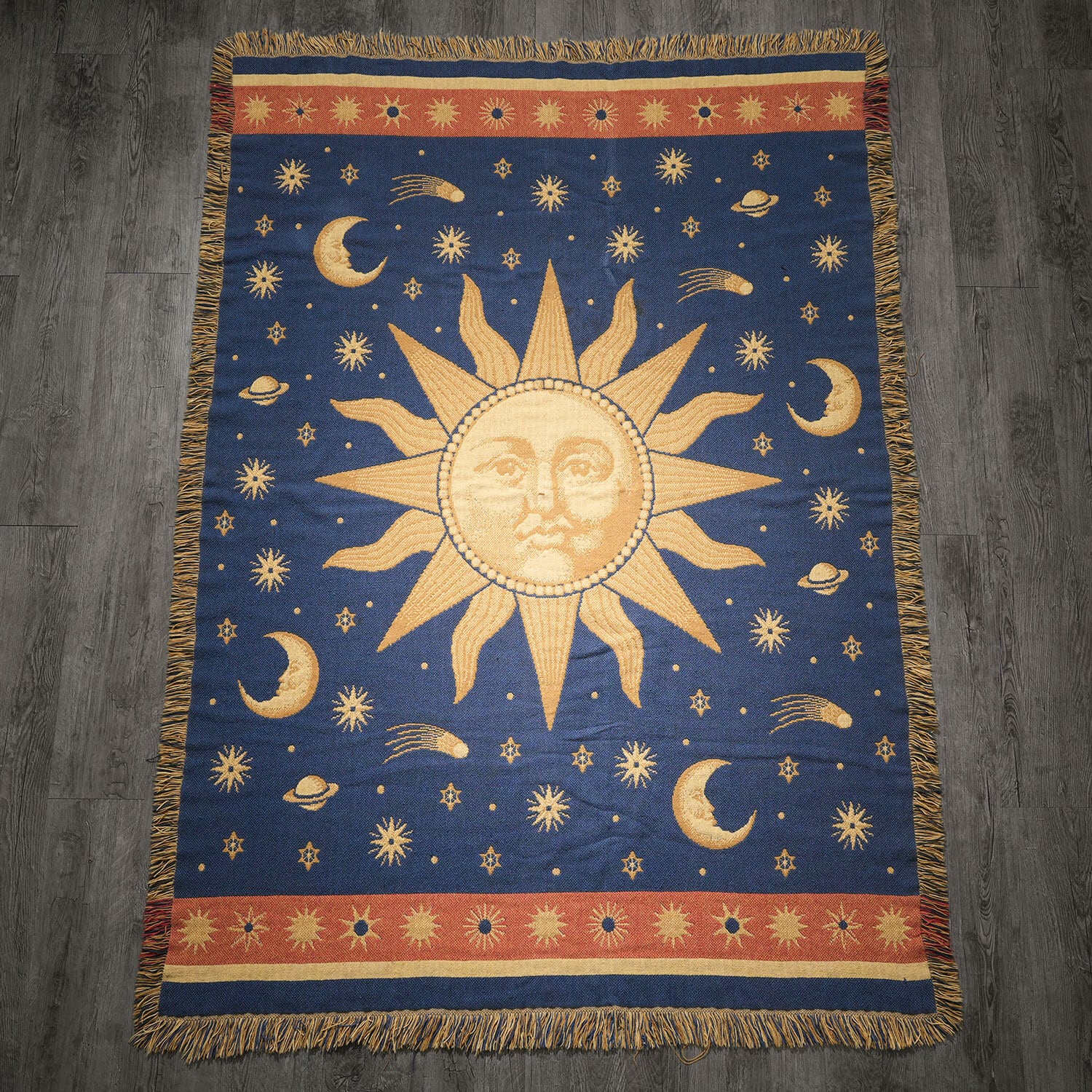 ヴィンテージ ラグ サン&ムーン 太陽と月 天体デザイン ジャカード ブランケット ボヘミアン タペストリー ウォールアート