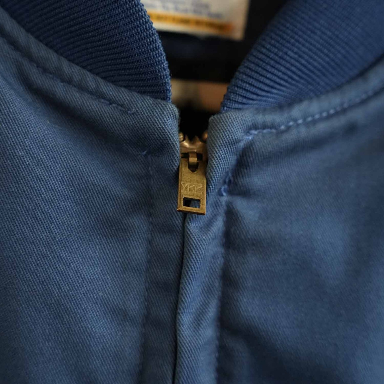 タグには “We Clothe The World With Quality” の文言と「MADE IN U.S.A.」表記。80〜90年代当時のアメリカンワークウェアに見られる誠実な作り込みが魅力です。アメカジはもちろん、ミニマルやユーティリティ系のスタイルにも自然に馴染む万能ブルゾン。