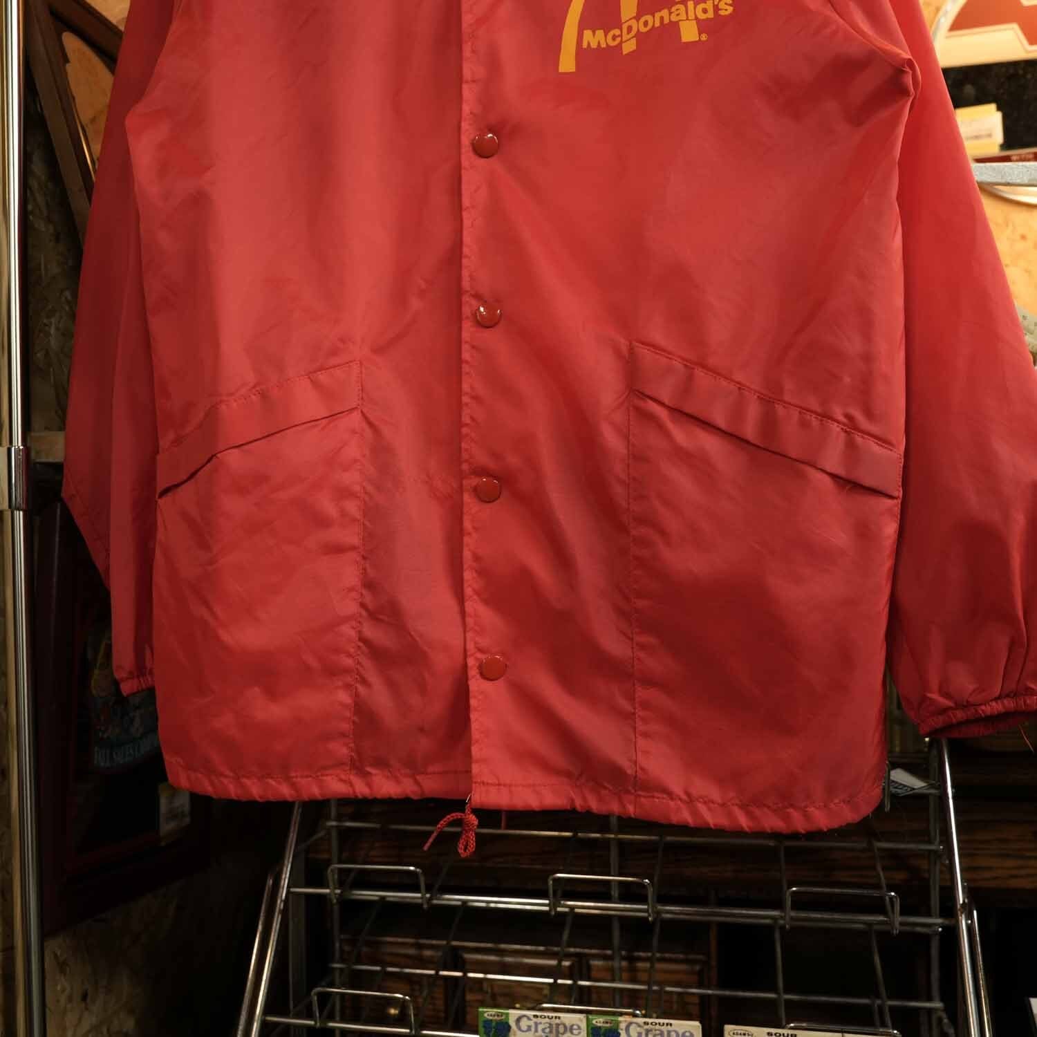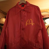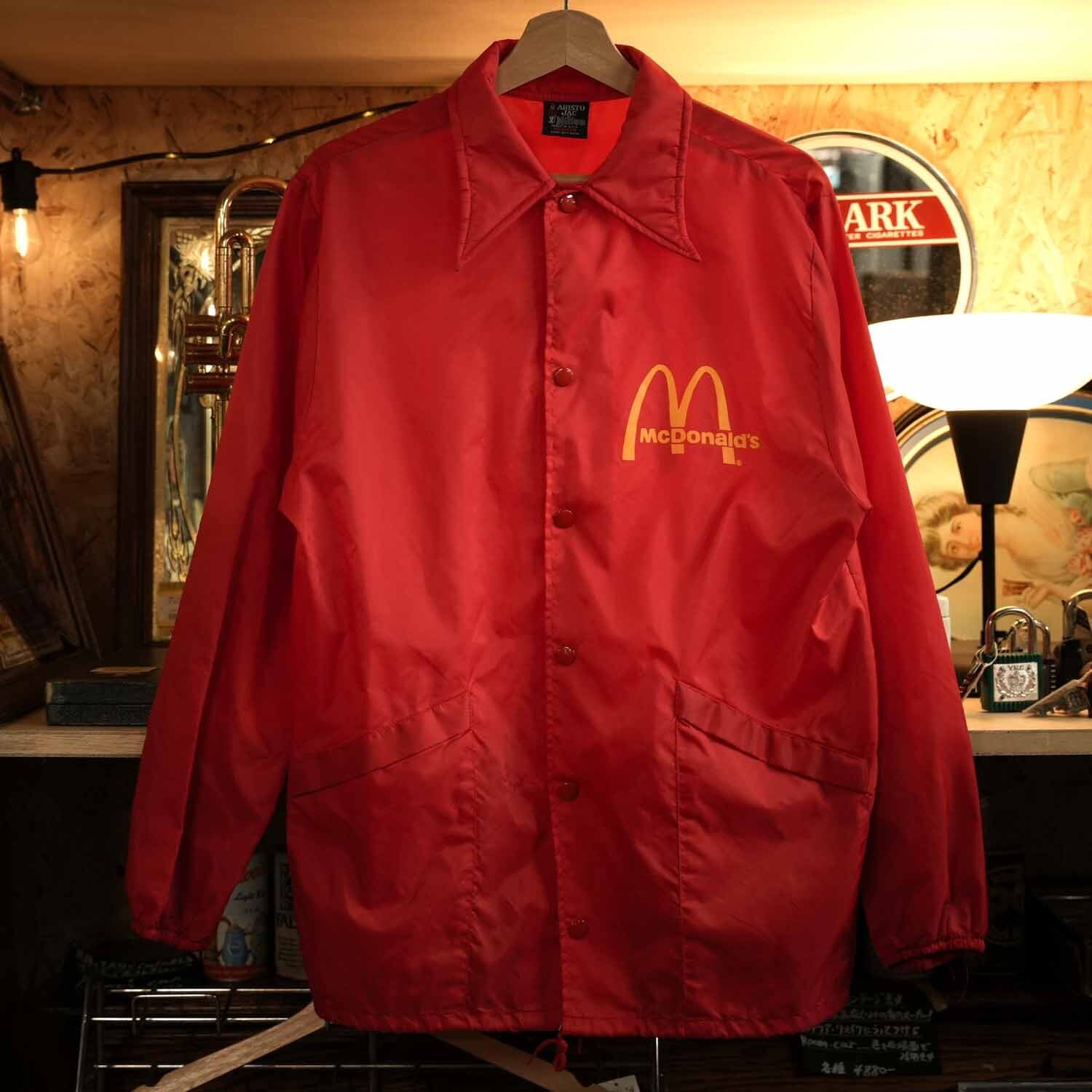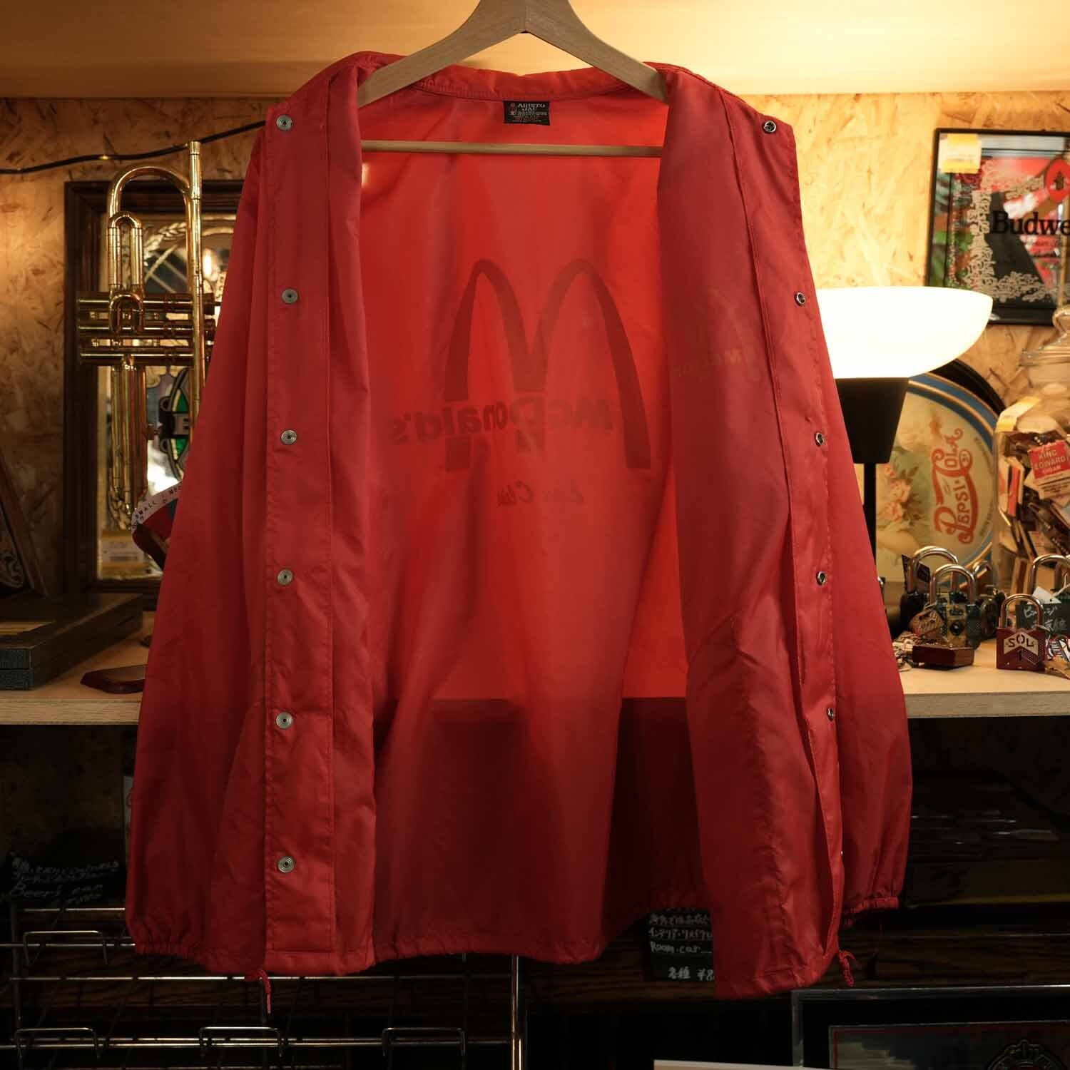 アメリカのファストフードカルチャーを象徴するブランド、McDonald’s(マクドナルド)のヴィンテージ・コーチジャケット。バックにはイエローでプリントされたおなじみのゴールデンアーチが映える、80年代頃の希少な一着です。