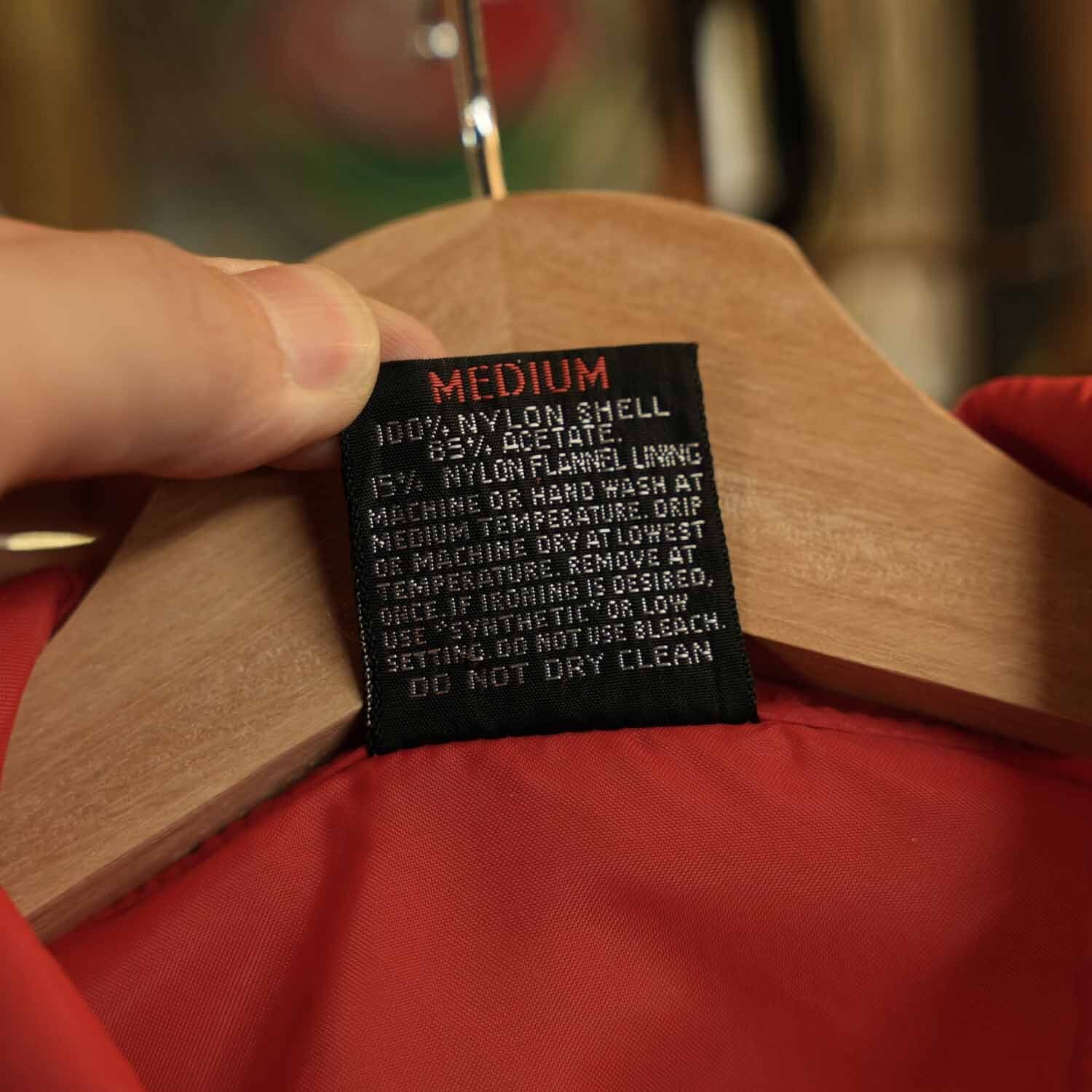 タグは老舗ワークブランド ARISTO JAC by Hilton 製。100%ナイロンシェルにフランネルライニングを備えた、軽量かつ防風性に優れた仕立てはまさに当時のアメリカ製ならでは。現地ウィスコンシン州「Eau Claire(オークレア)」店のクルーユニフォームとして実際に使用されていたアイテムと思われ、プリントのフォントや配置もその地域特有の仕様となっています。