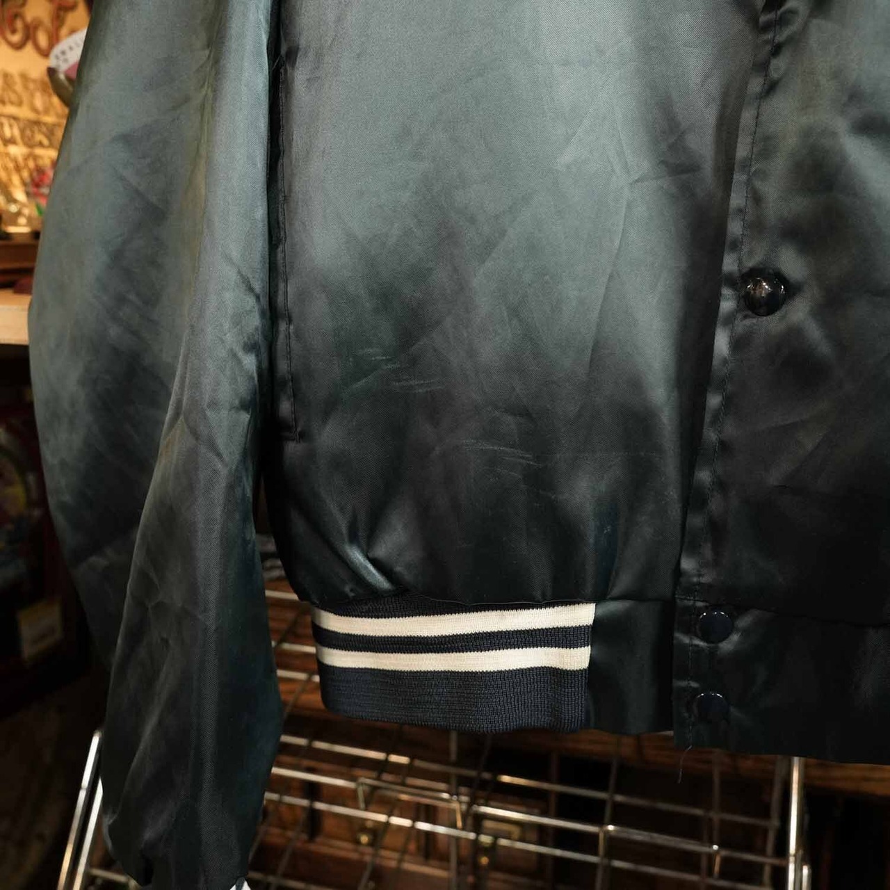 アメリカ海軍を象徴する「U.S. NAVY」のレタリングが大胆にあしらわれた、1980~90年代頃のSOFFE JACKETS(ソフィージャケット)製ナイロンスタジャン。