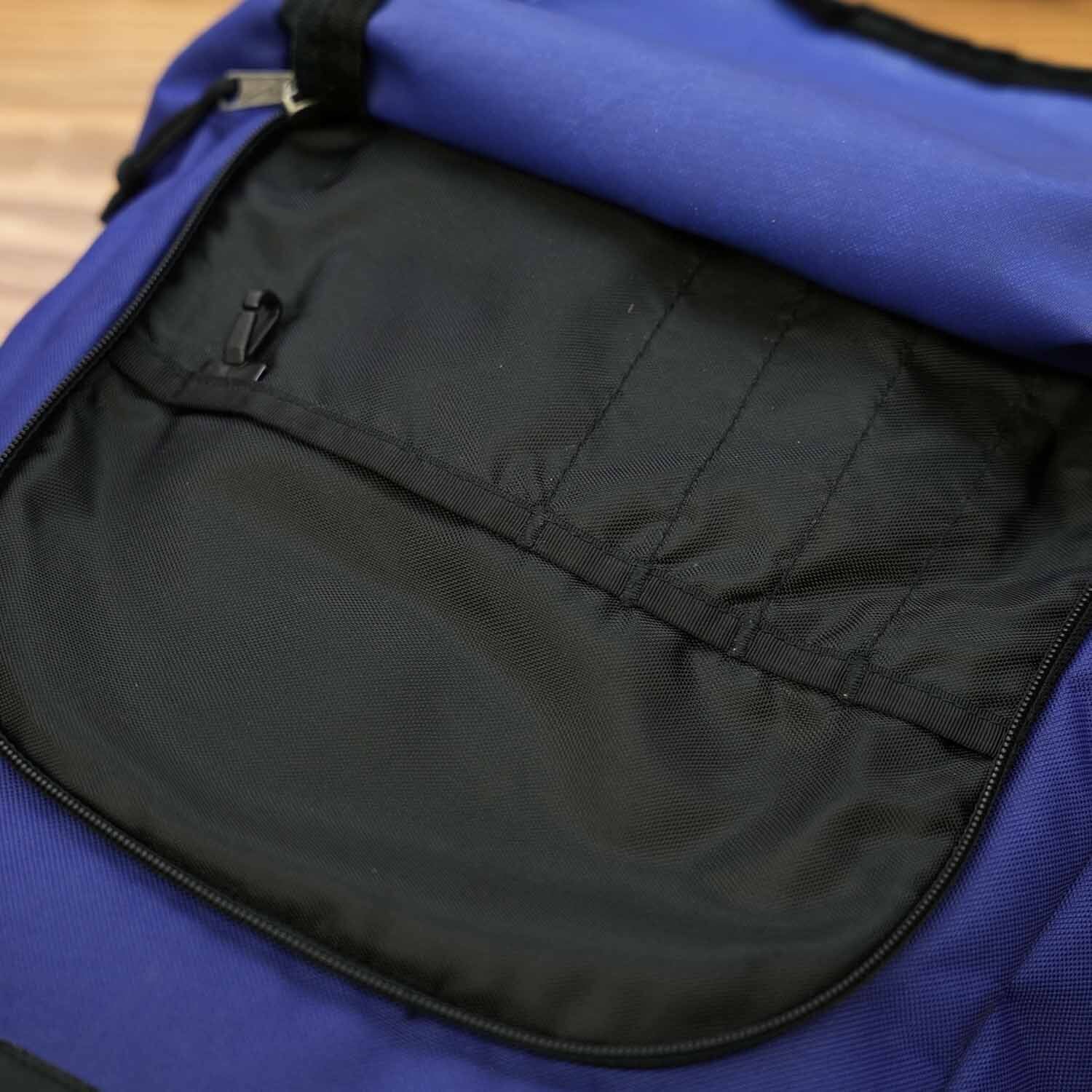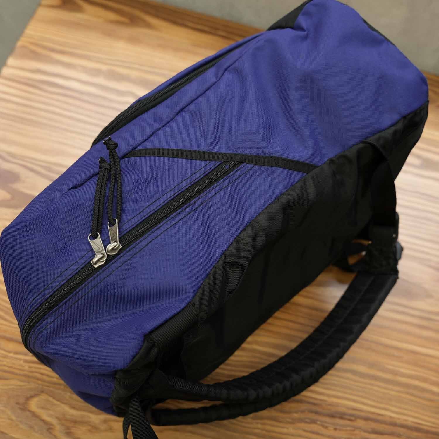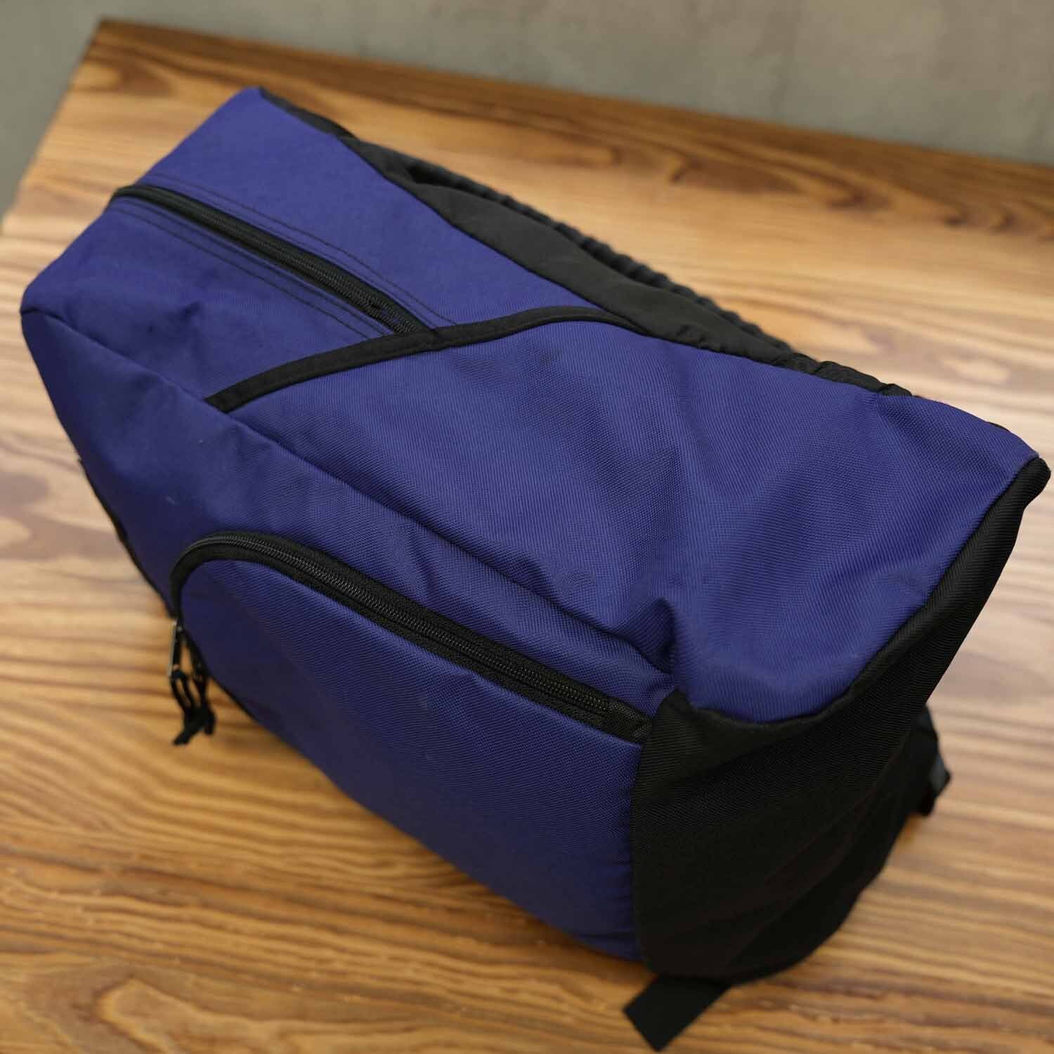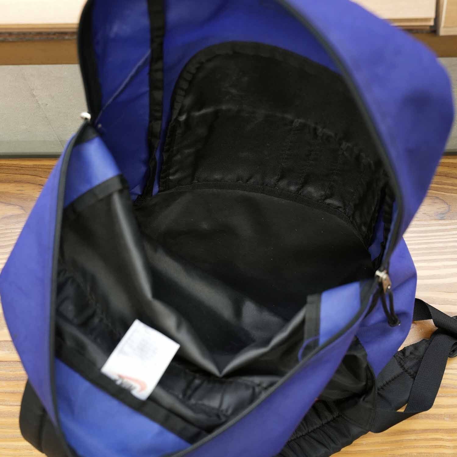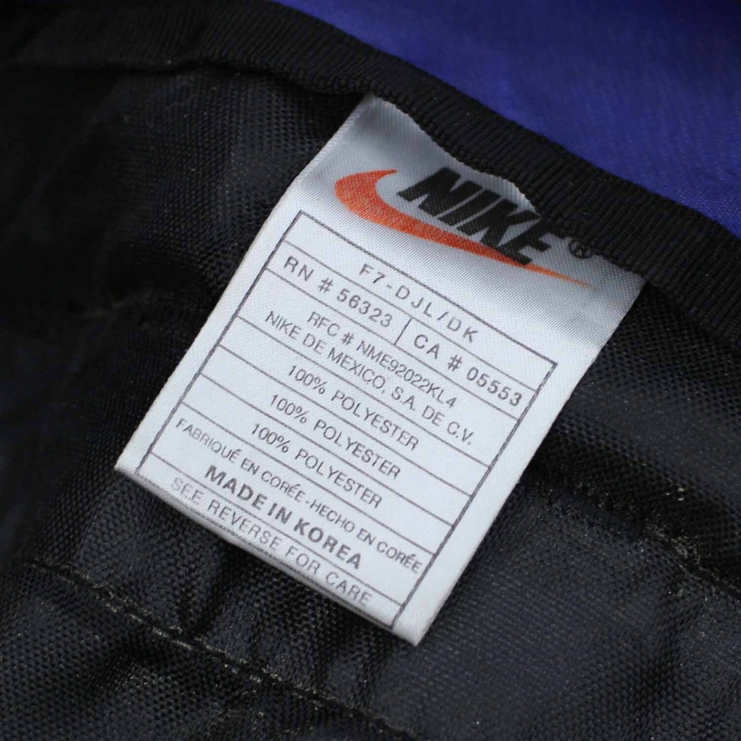 NIKE ナイキ ナイロンバックパック 90s 韓国製 スウッシュ 刻印パーツ × 刺繍ロゴ ブルーパープル×ブラック スクバ オールドナイキ サブバッグ 古着【furugi-1063】