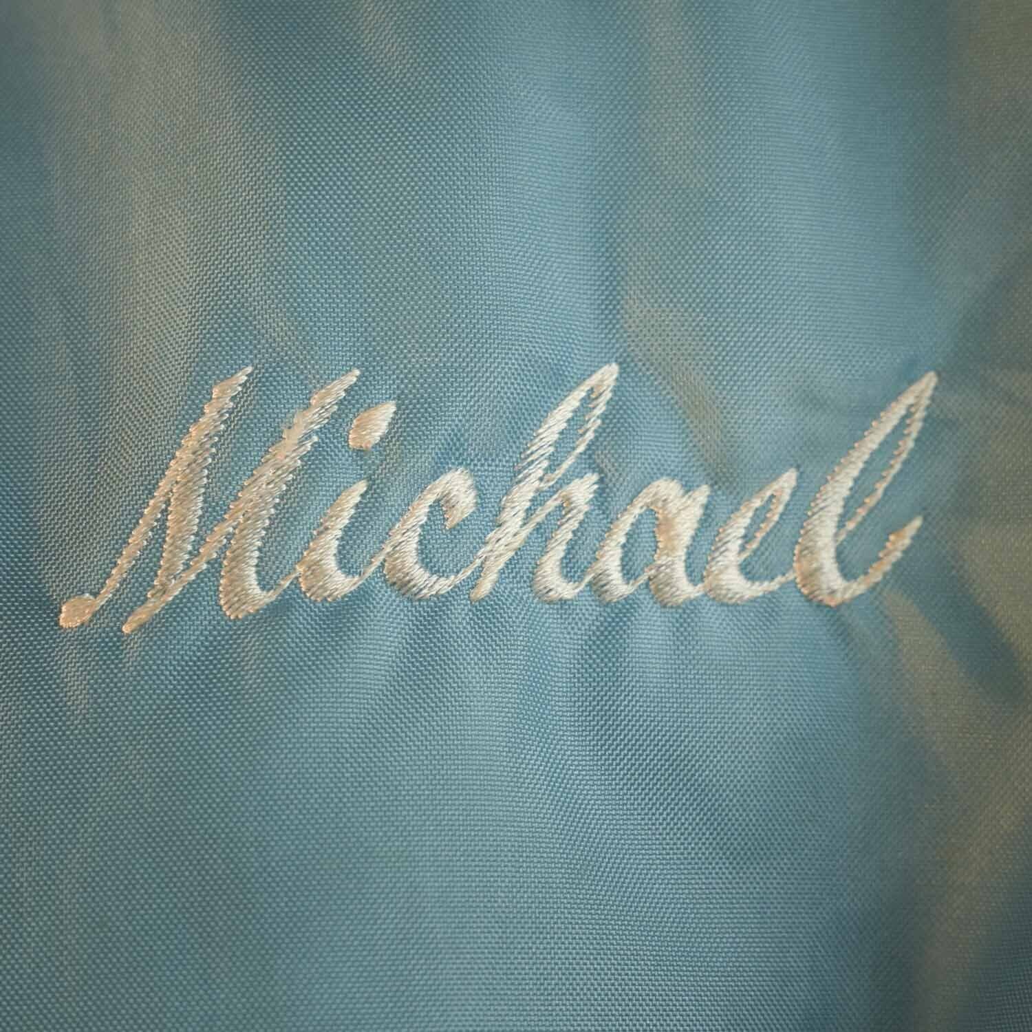胸の「Michael」ネーム刺繍はおそらく当時のオーナー名。個人オーダー品らしい温もりが感じられ、一点モノのヴィンテージならではの魅力を際立たせています。