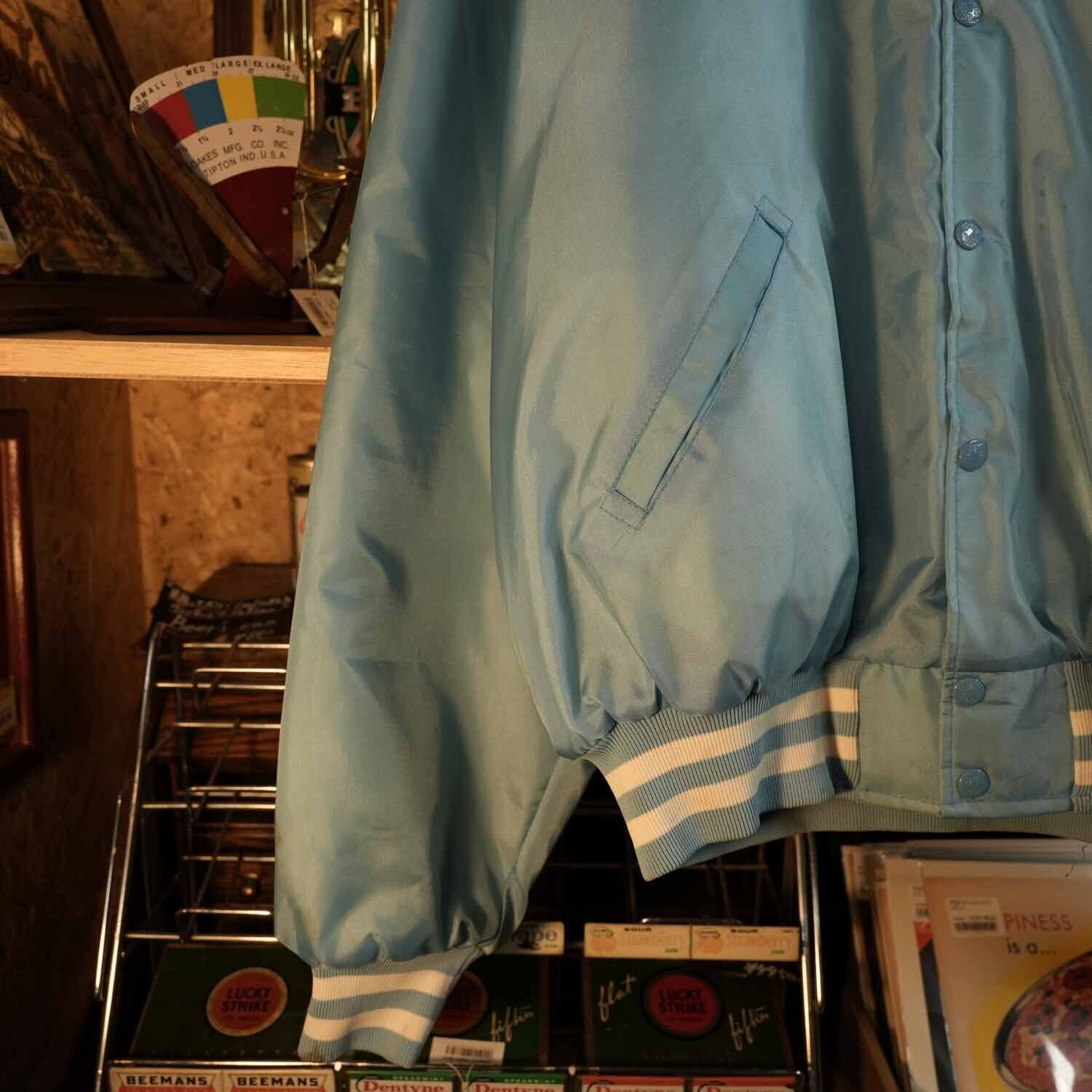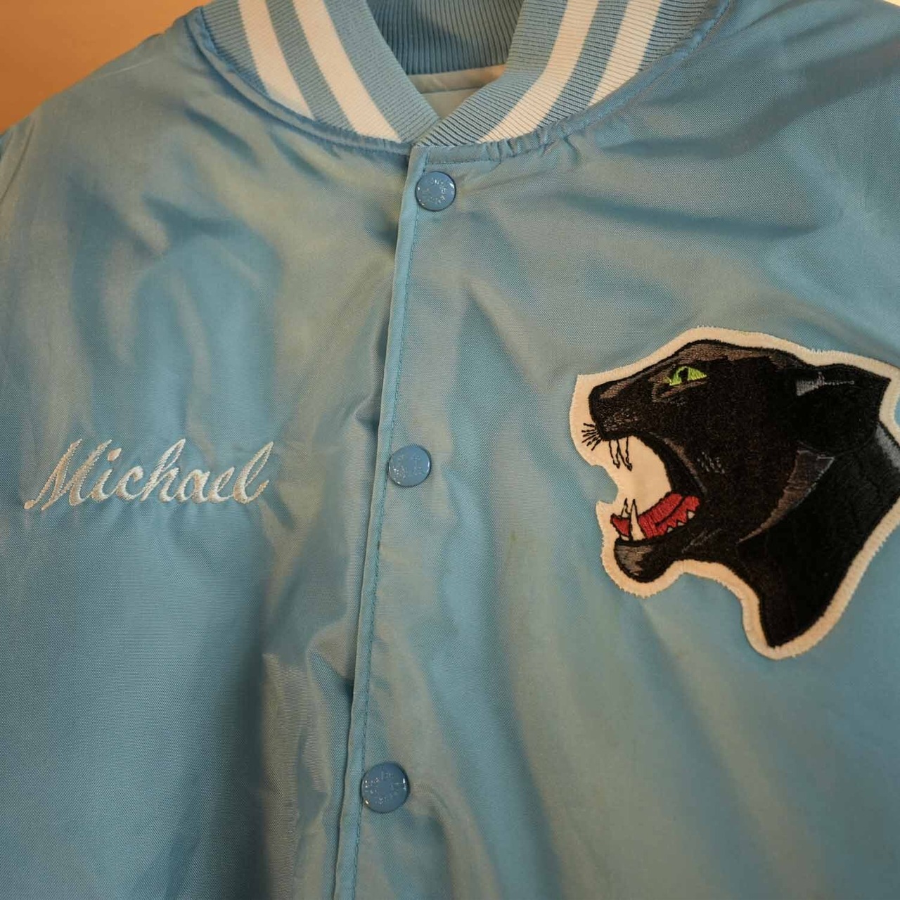 USA製 Birdie ナイロンスタジャン サックスブルー XXL 刺繍 パンサーワッペン Johnston Football 80s 90s ヴィンテージ アメカジ ブルゾン 古着【furugi-0933】