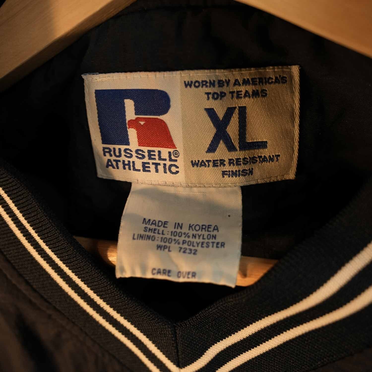 RUSSELLは1902年創業、アメリカンスポーツウェアの黎明期を支えた老舗ブランド。ChampionやJerzeesと並び、90年代古着シーンを語る上で欠かせない存在です。その堅牢な縫製と無骨なシルエットは、今なお多くのアメカジファンを惹きつけています。
