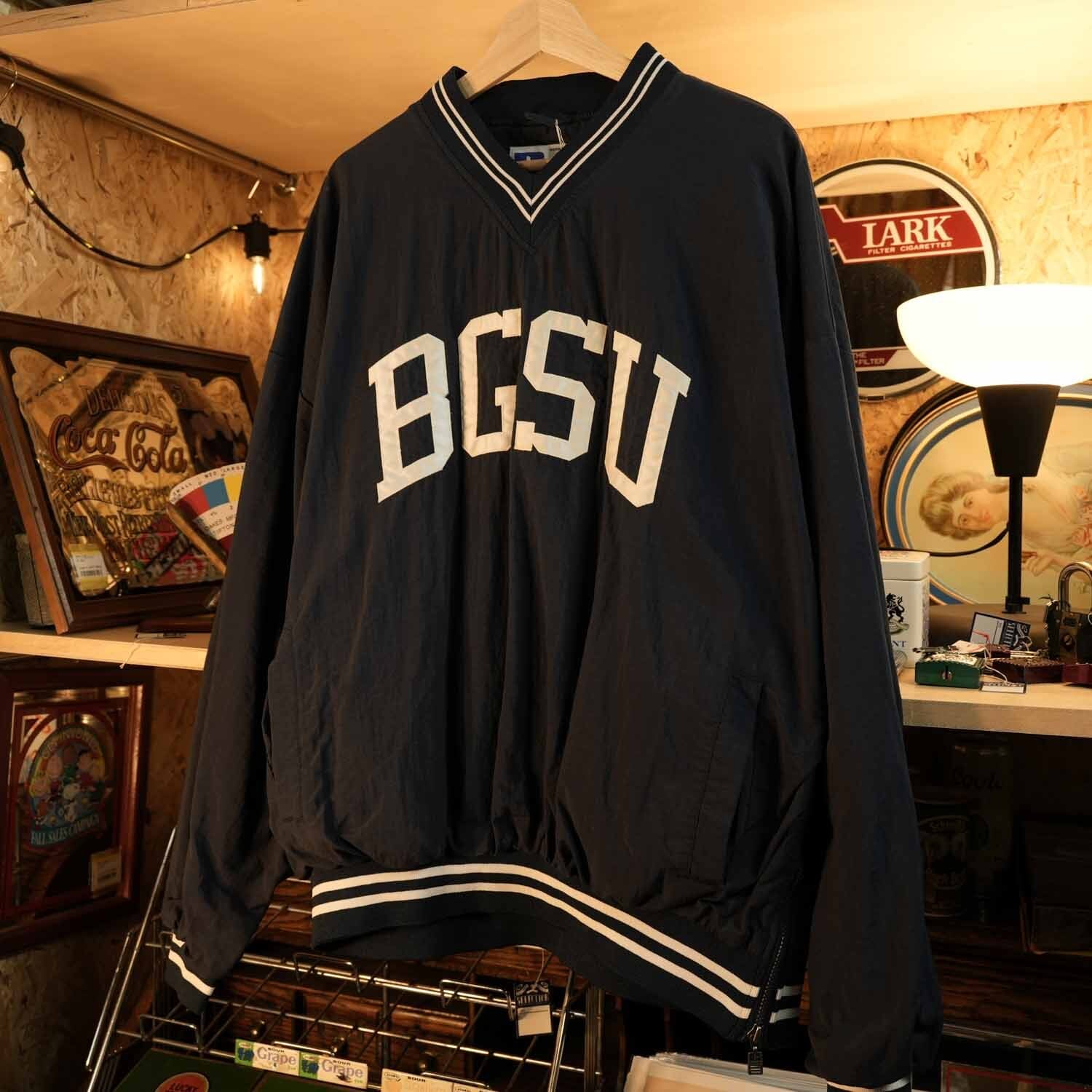 90年代アメリカ製スポーツウェアの象徴的ブランド、〈RUSSELL ATHLETIC(ラッセル アスレチック)〉によるBGSUカレッジ・ナイロンプルオーバー。