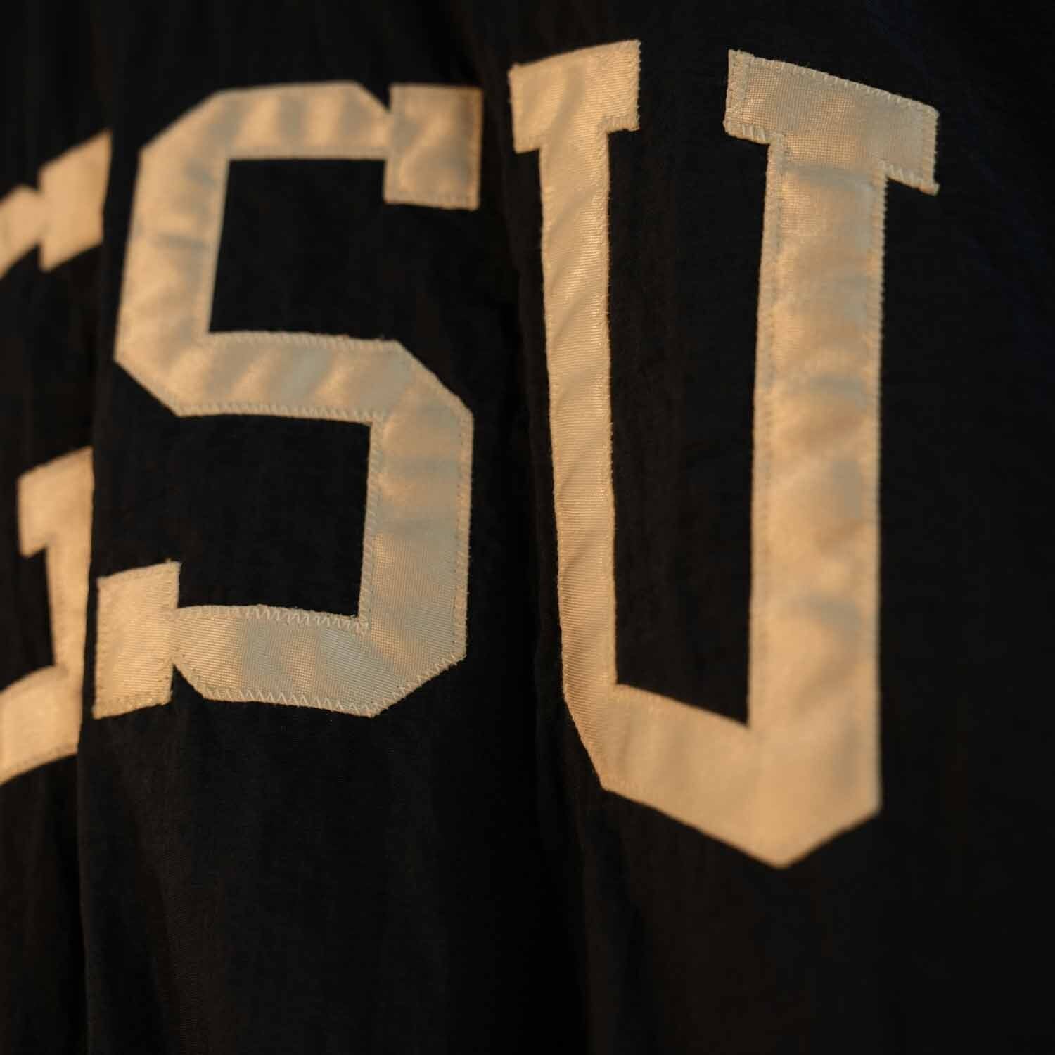 胸にはアメリカ・オハイオ州の名門大学BOWLING GREEN STATE UNIVERSITY(BGSU)のビッグロゴを大胆に配置。立体的なワッペン刺繍が存在感を放ち、ストリートにもヴィンテージにも映えるクラシックなデザインです。