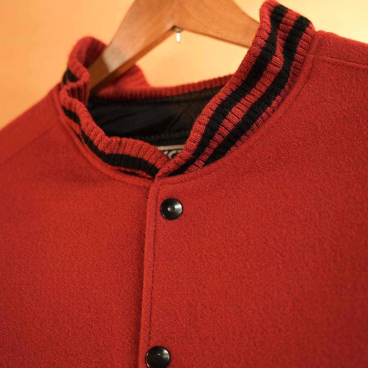 程よく肉厚なウールメルトンボディと、しなやかなレザー袖の組み合わせは、当時のスタジャンらしい重厚感と存在感を併せ持っています。