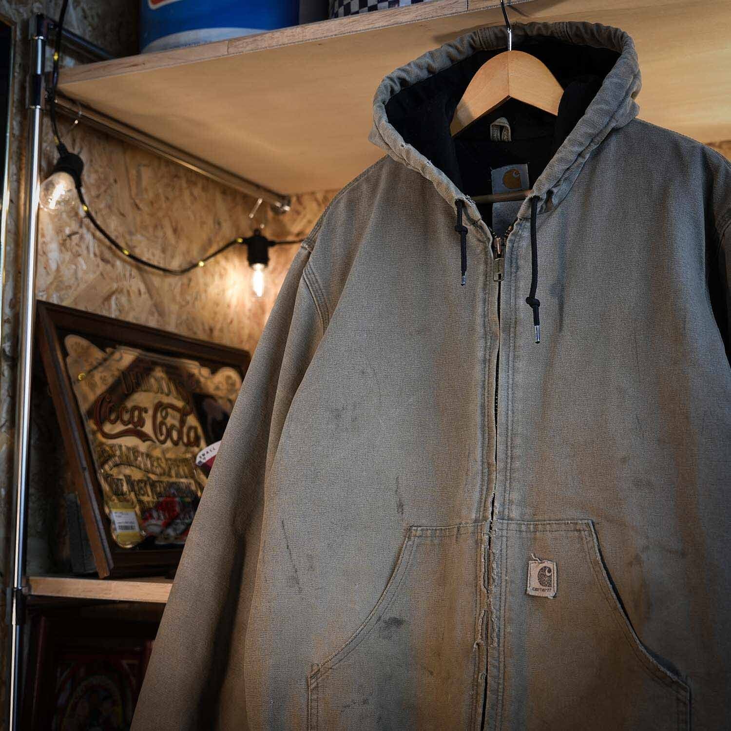 Carhartt 00s アクティブジャケット フェードカーキ ダック地 短丈 ワークパーカー ダメージベージュ 古着 アメカジ カーハート【furugi-0921】