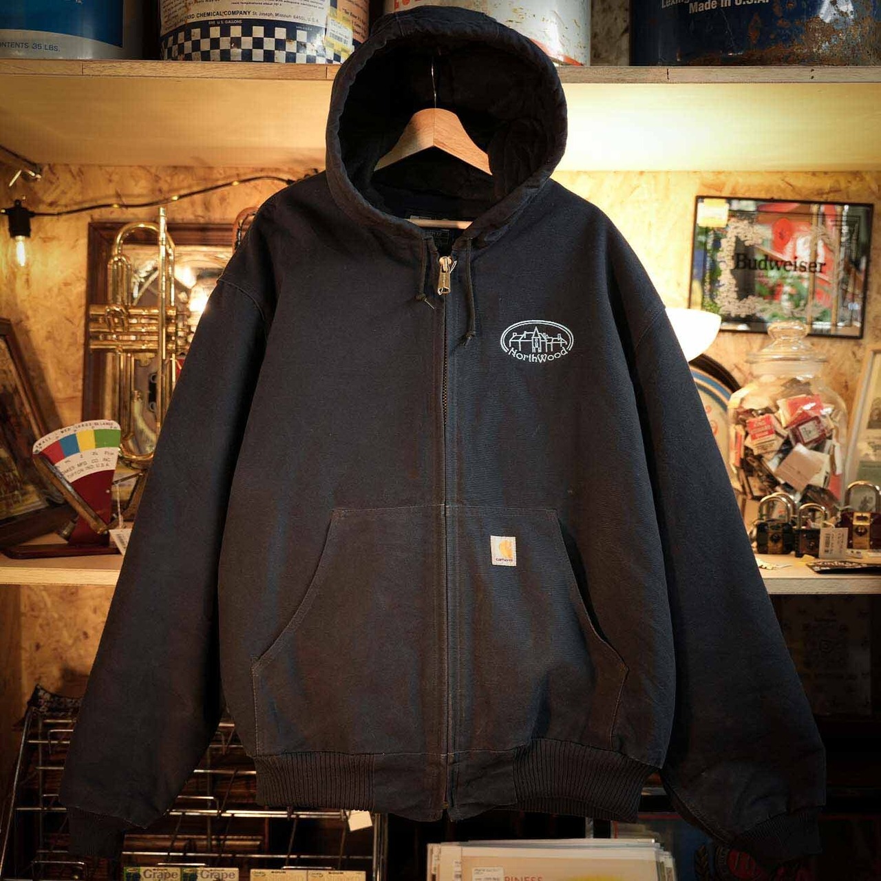 カーハート Made in USA ダックアクティブジャケット J01 ブラック 2XL Northwood刺繍 ワークパーカー カーハート Carhartt アメリカ製 古着 【furugi-0923】