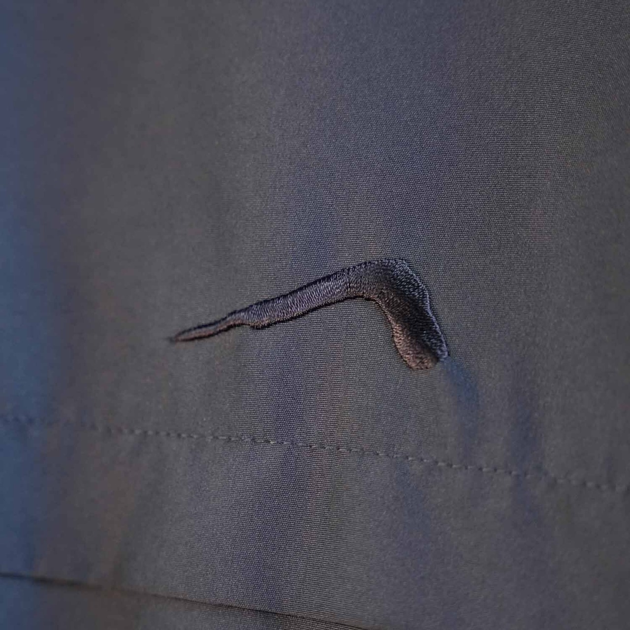 胸にはブランドの象徴である流線型の刺繍ロゴ、ジップエンドにはブランドロゴ入りのプルタブを配置。シンプルながらも細部の作り込みが丁寧で、現代のアウトドアブランドにはないクラシックな空気を纏っています。