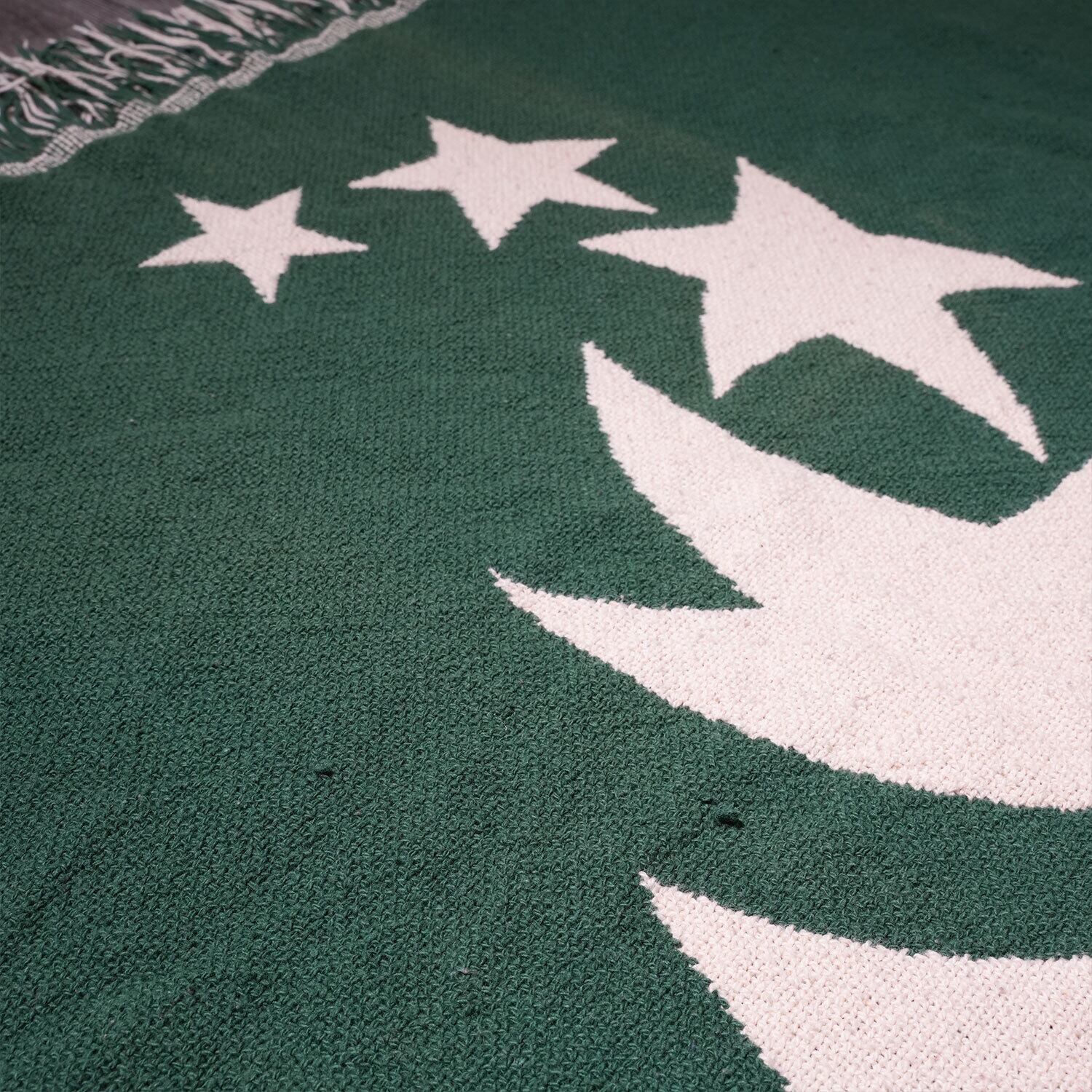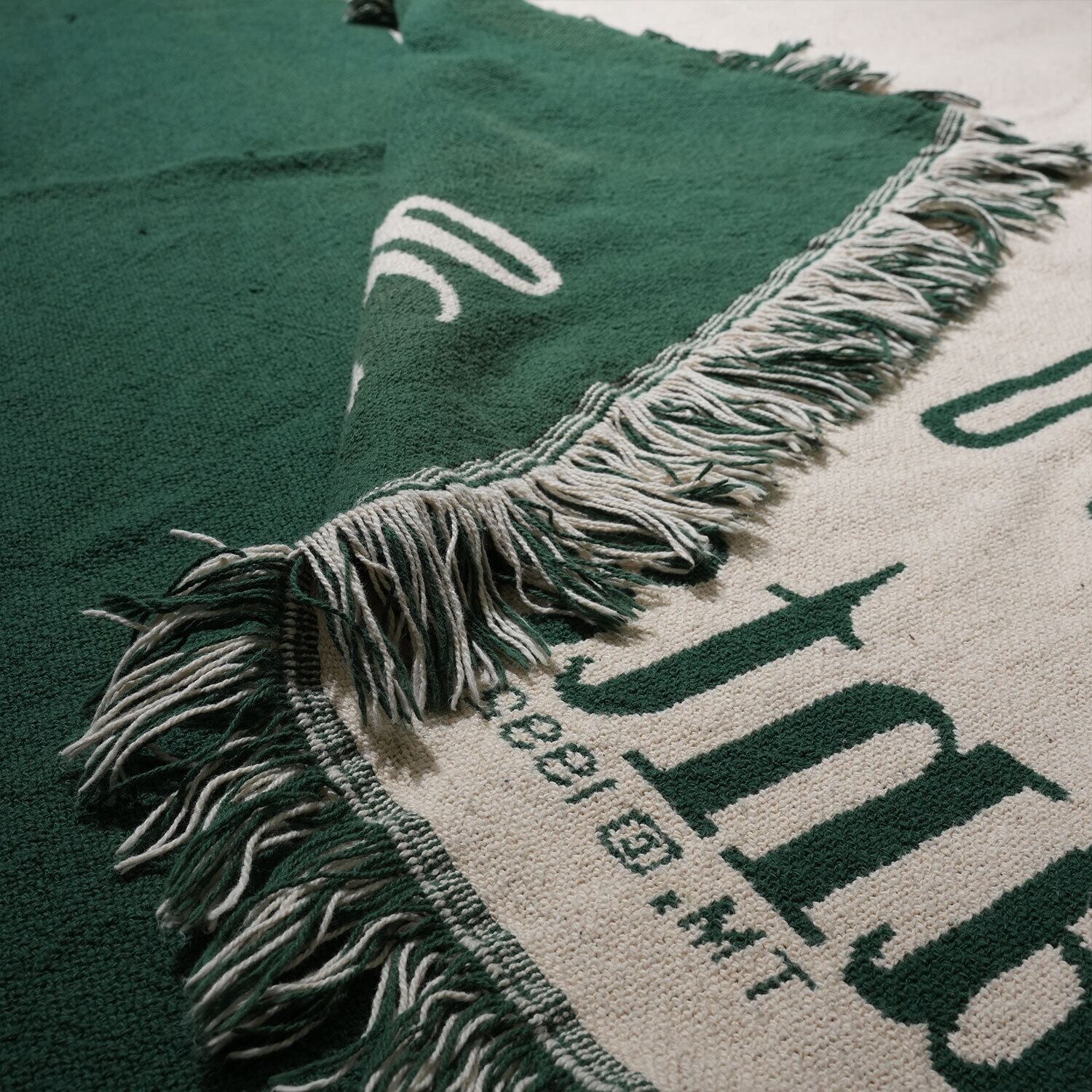 約120cm × 153cmのサイズ感は、ソファに掛けてカバーにしたり、ベッドの足元に敷くスローとして最適です。