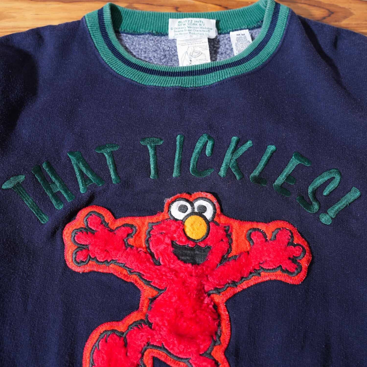 90s オフィシャル 実測S~Mサイズ BLITZZ SESAME STREET ELMO エルモ ワッペン 刺繍 スウェット THAT TICKLES! ボイスギミック 古着【furugi-1822】