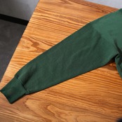 ボディは裏起毛のクルーネックスウェットで、素材はコットン×ポリエステル混紡。程よい厚みがあり、当時のアメリカ製スウェット特有の無骨な雰囲気が残る個体です。