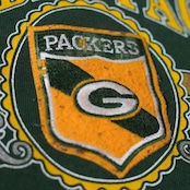 NFL公式ライセンスのもと展開されたファン向けアパレルで、フロントにはチームロゴとともにNFC Central Division表記、Lambeau Fieldや所在地(Wisconsin)など、チームにまつわる情報を装飾的に配置した90sらしいデザインが採用されています。