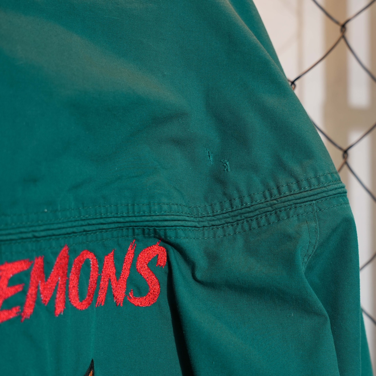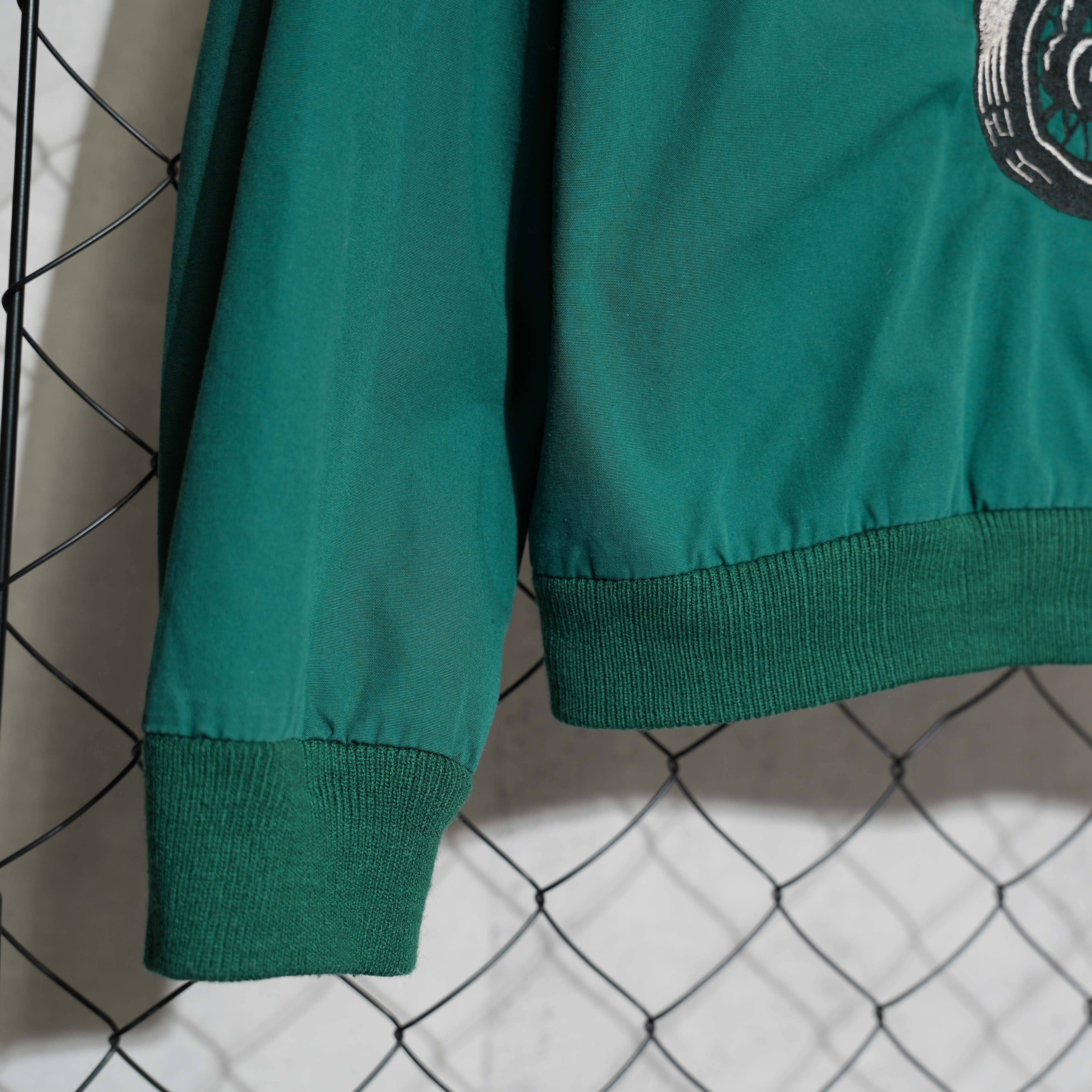 80s~90s EAGLES RIDGE OUTFITTERS ダービージャケット グリーン XL表記 SPEED DEMONS 刺繍 STSジッパー ロシア製 刺繍ジャケット べトジャン スーベニア スカジャン ライトアウター 古着【furugi-1838】