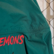 背面には「SPEED DEMONS」の文字と、バイクに跨るデビルモチーフの大型刺繍が入り、無地が多いダービージャケットの中でも強い存在感を放ちます。ワイドデニムやチノと合わせた王道アメカジはもちろん、短丈を活かした現代的な着こなしにもおすすめの一着です。