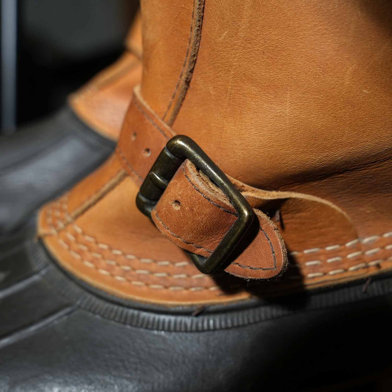 こちらは定番のレースアップとは一線を画す、バックル付きエンジニアストラップ仕様。1912年創業の老舗アウトドアブランドが誇るメイン州自社工場生産モデルで、アウトソール刻印とヒールパッチからもその背景を確認できます。