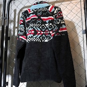 00s Columbia ボアフリース アノラック Lサイズ プルオーバー 総柄 ポリエステル ブラック×レッド 2000年代 ベトナム製 ネイティブ調 総柄 オルテガ スナップボタン 古着【furugi-1879】
