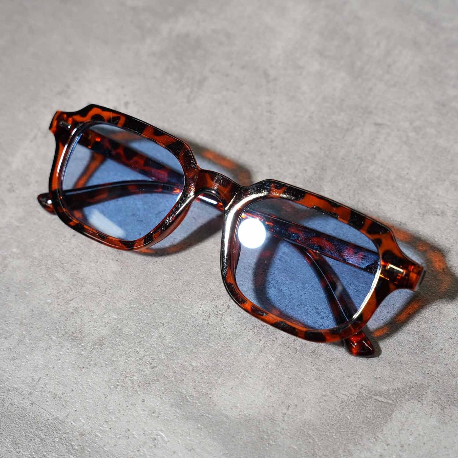 スクエアフレーム カラーレンズサングラス トイグラス 度無し 雑貨 レンズ:ブルー フレーム:べっこう べっ甲調 ファッションサングラス クラシックデザイン ヴィンテージデザイン レトロデザイン