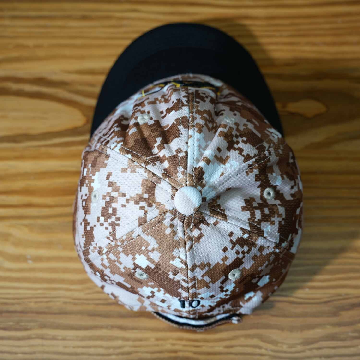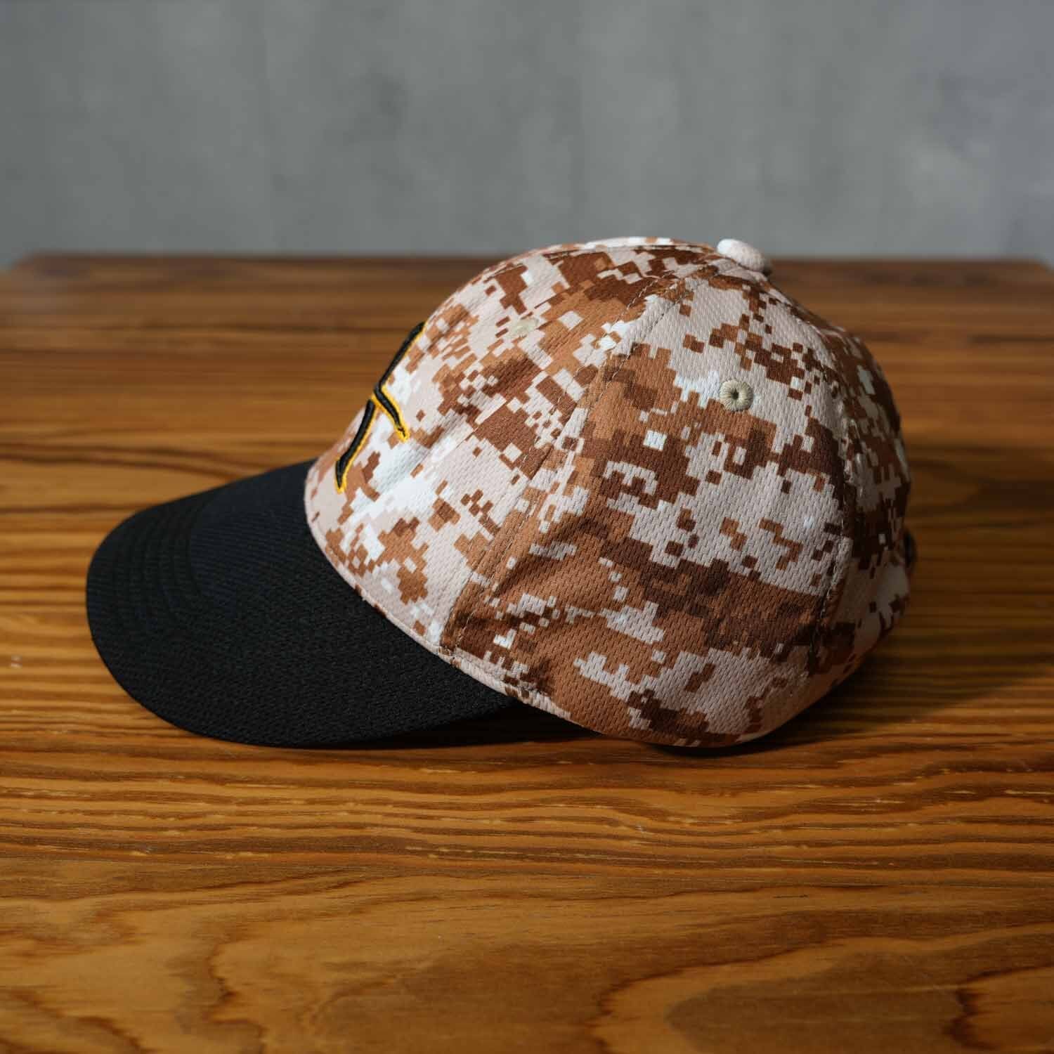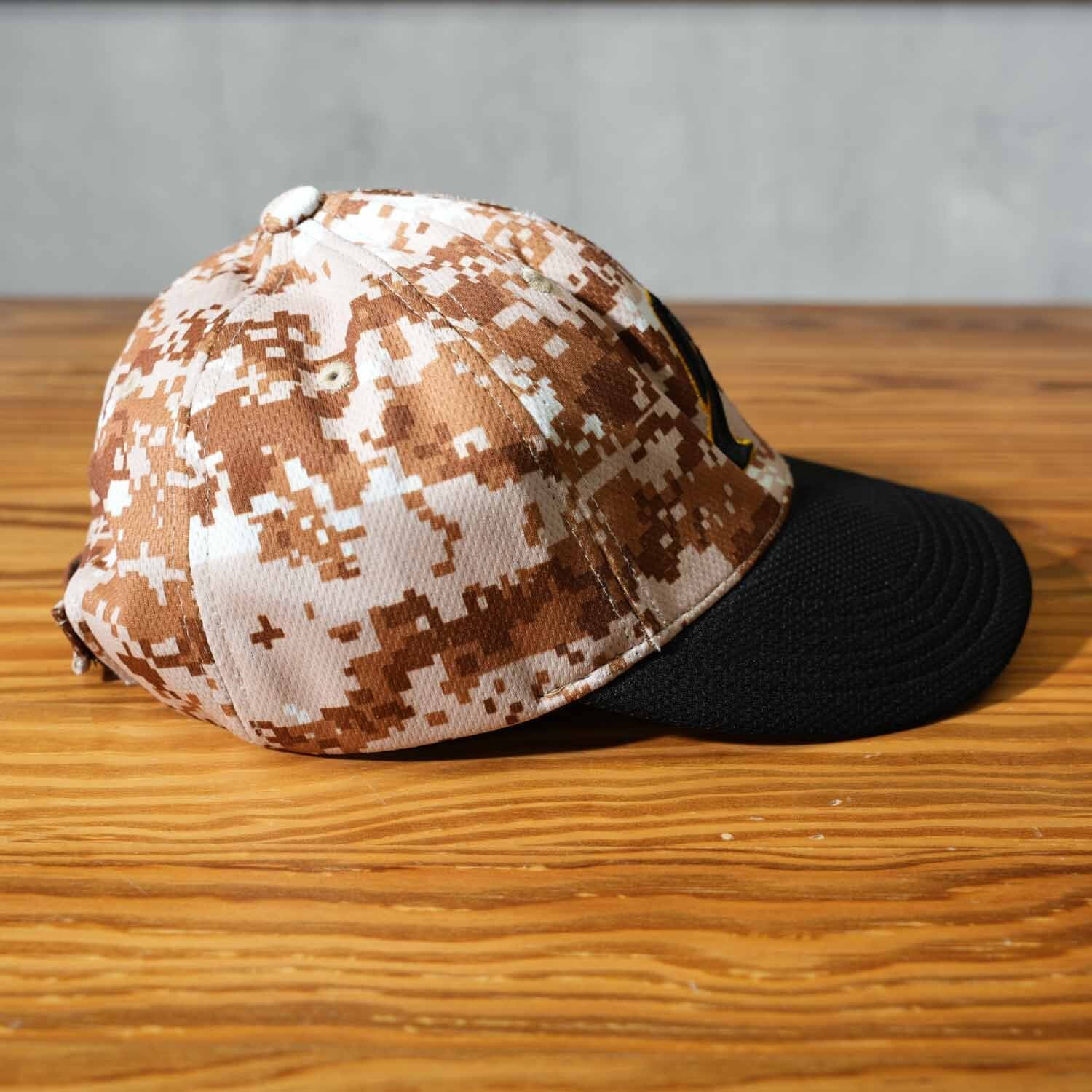 ボディは通気性の良いメッシュ切替仕様。カモ柄にはデジタルパターンを採用し、ミリタリーとスポーツがミックスされた、00年代らしいデザインバランスが魅力。ブラックのツバが全体を引き締め、派手すぎず被りやすい仕上がりです。