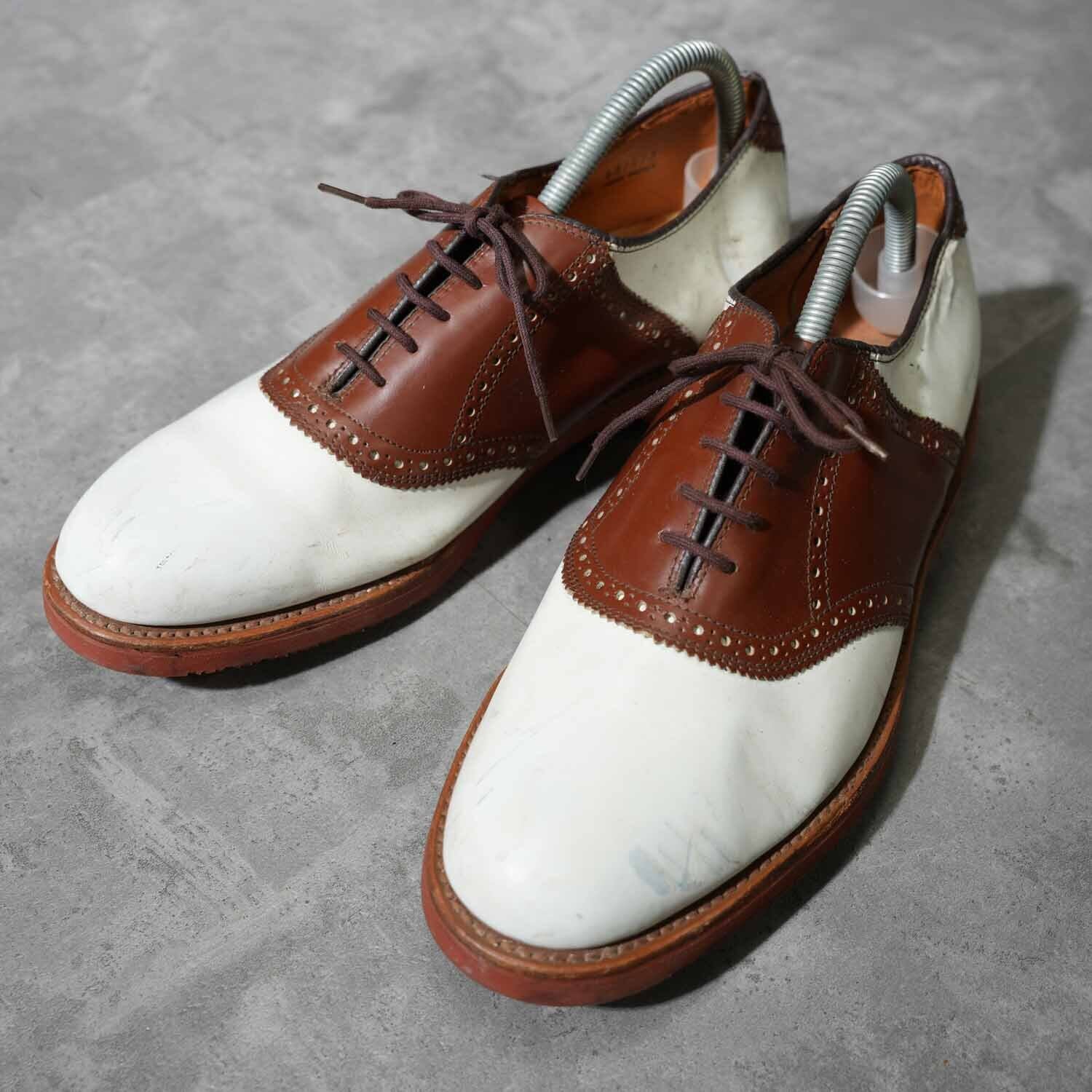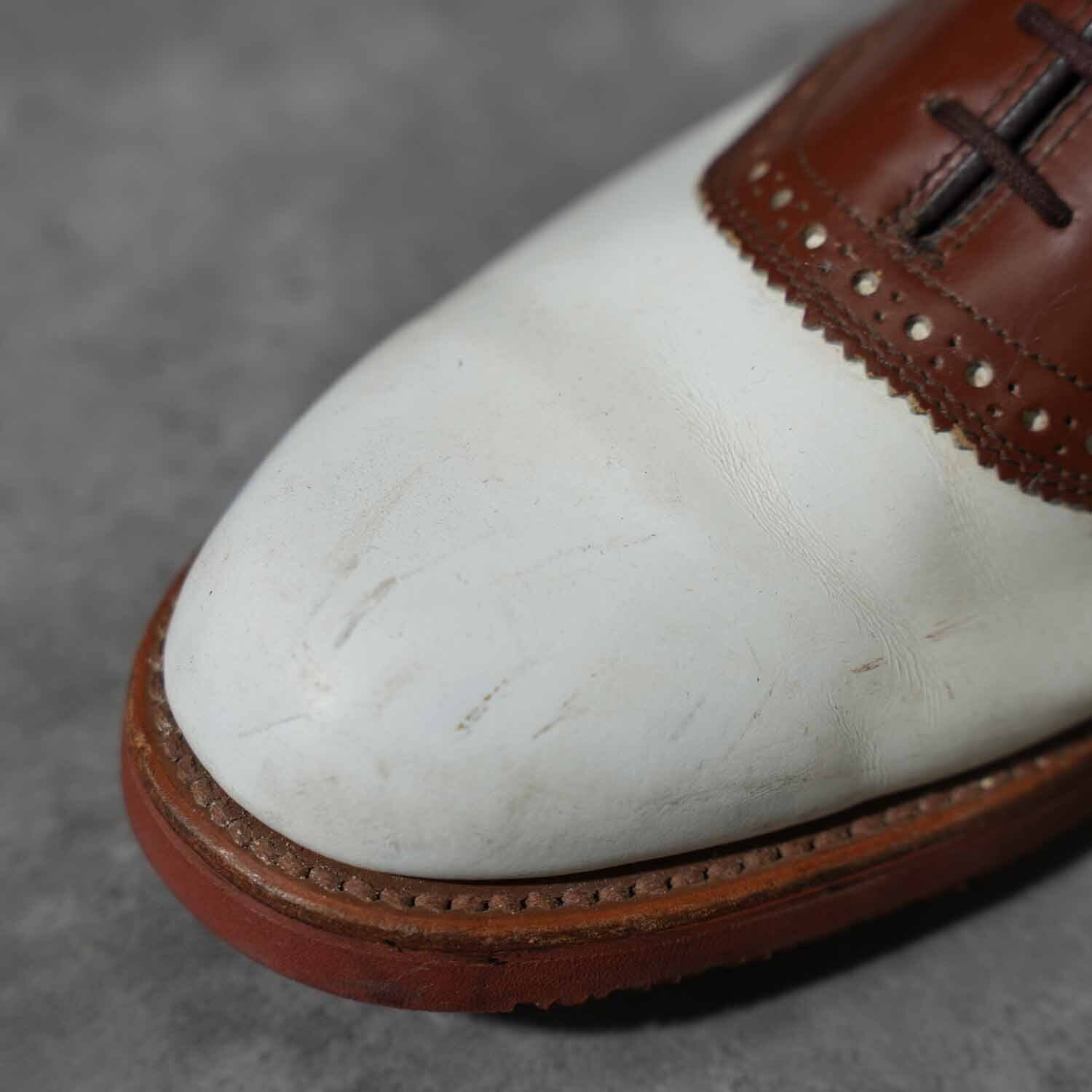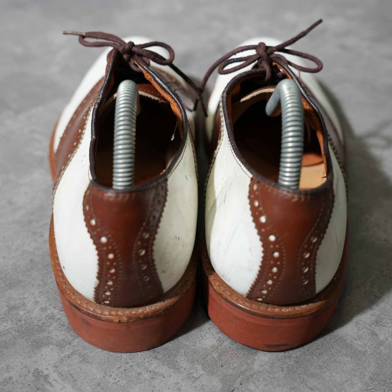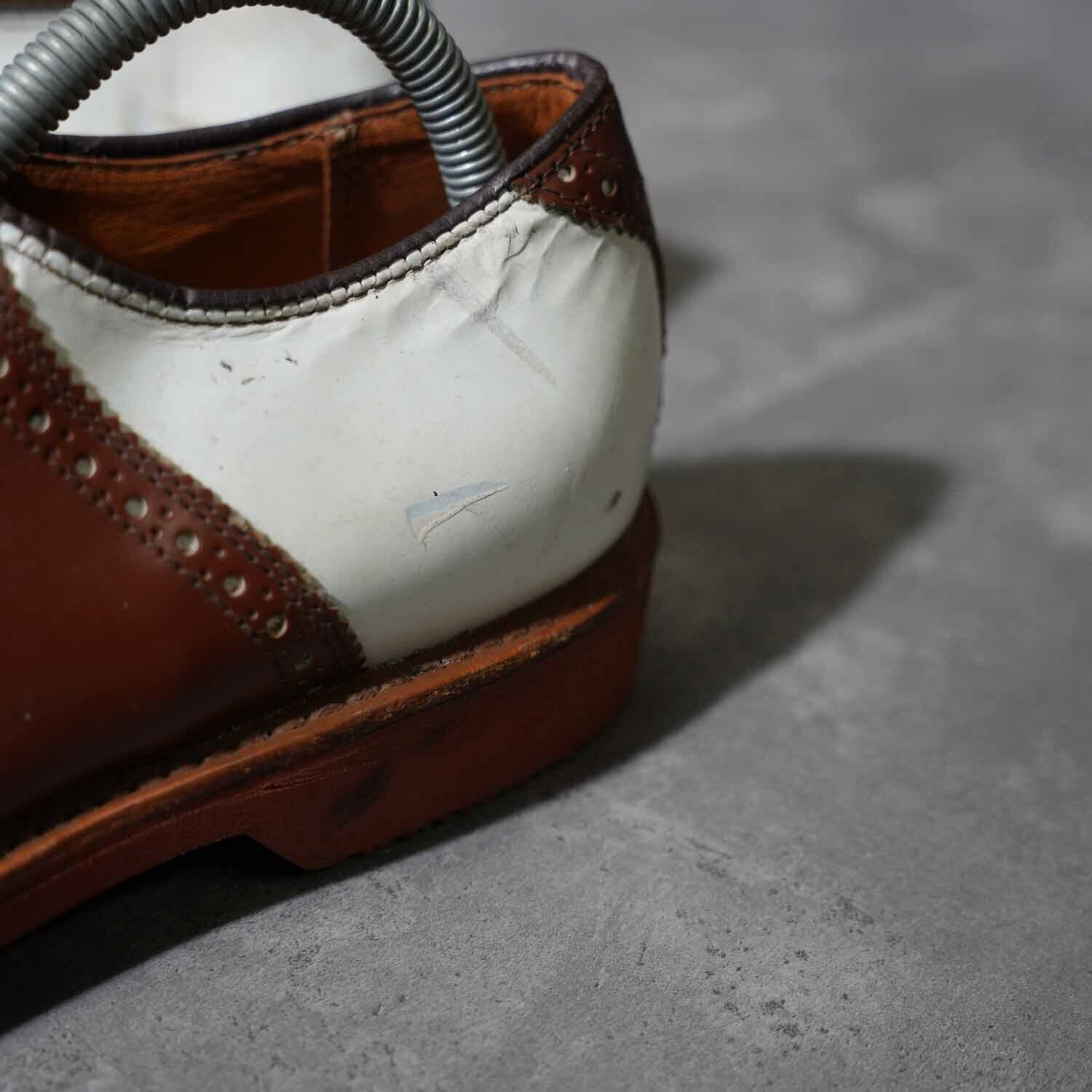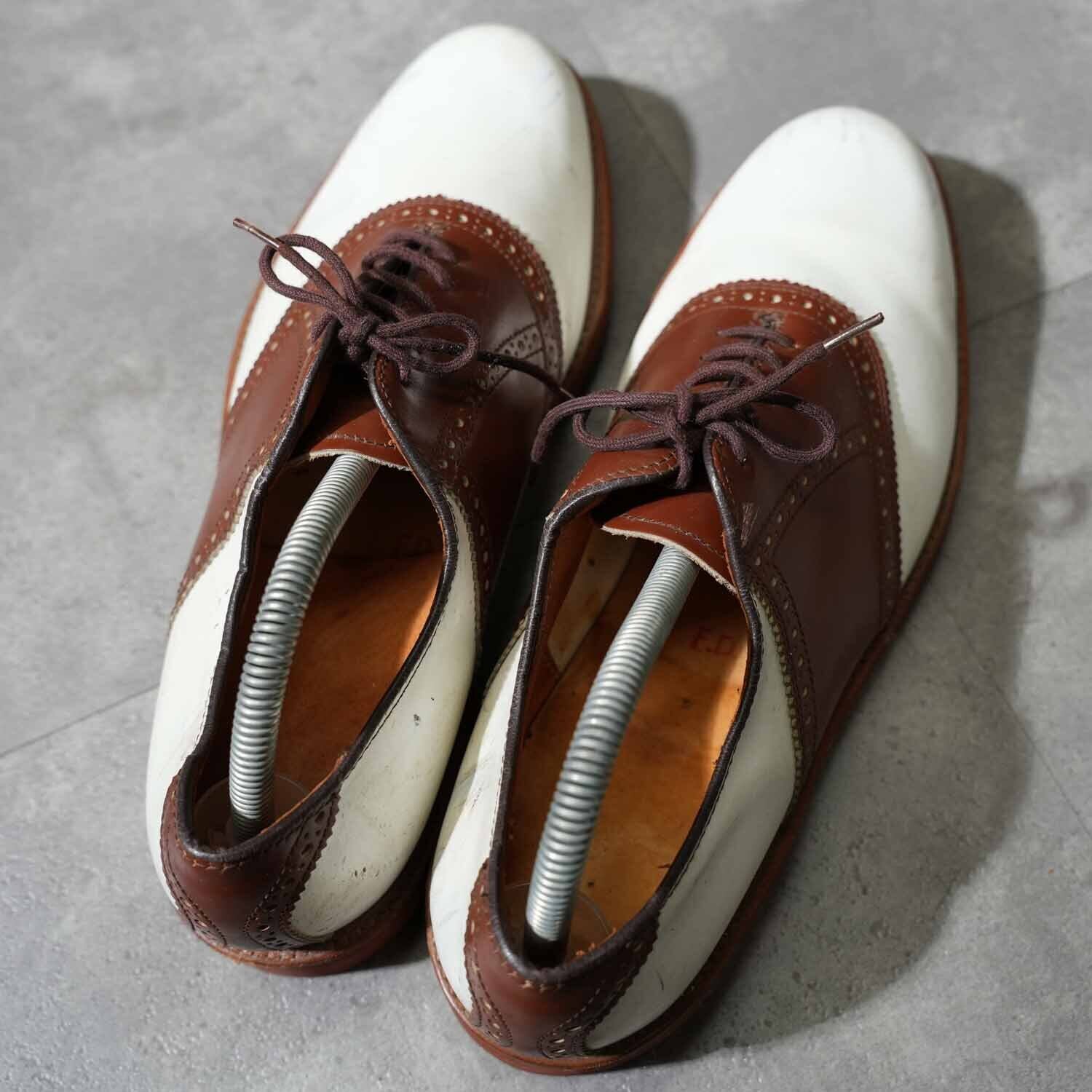 Vibramソール サドルシューズ ツートーン ホワイト×ブラウン レザーシューズ 8 1/2M(約26.5cm)|アメリカントラッド アメカジ 革靴 ブーツ 古着【furugi-1868】