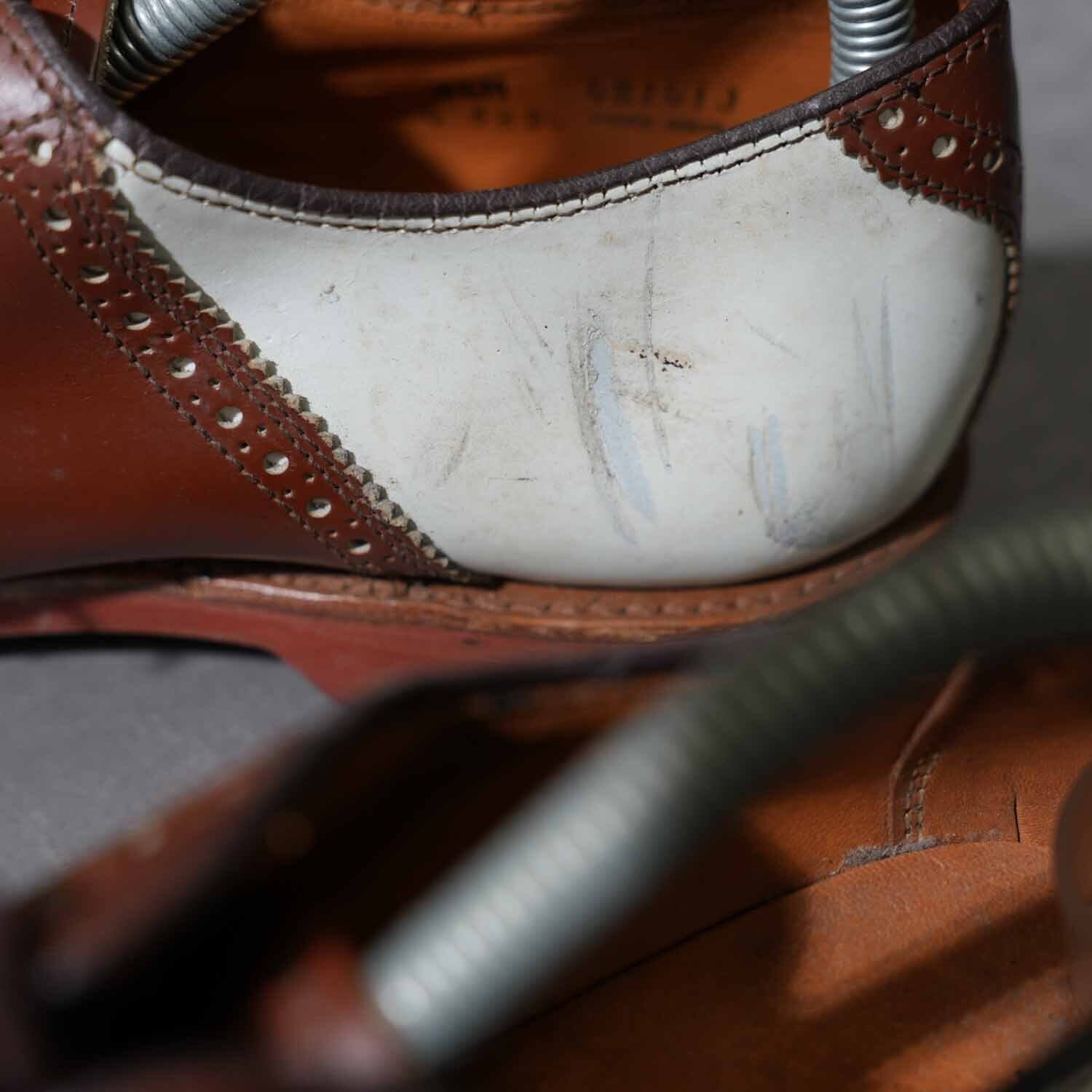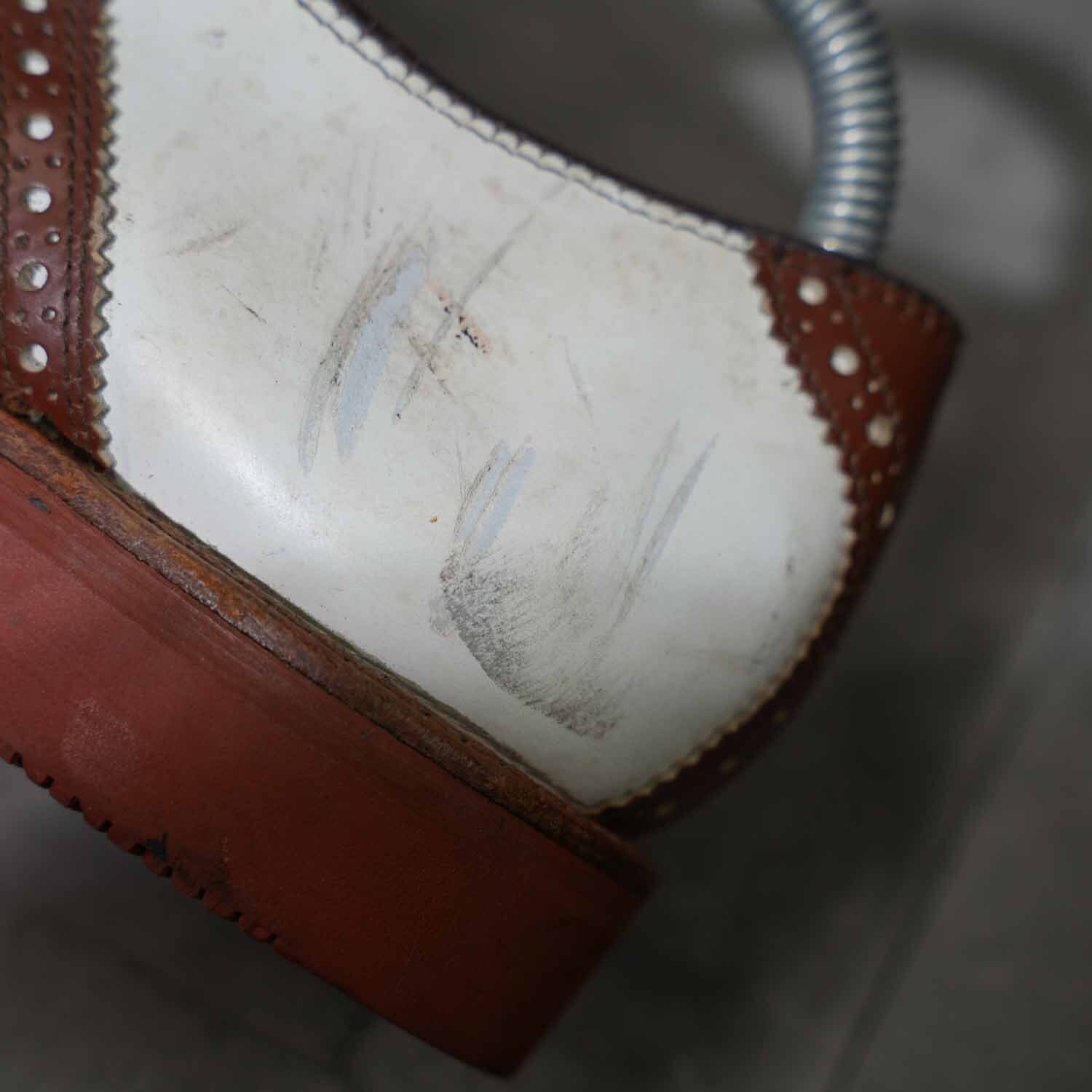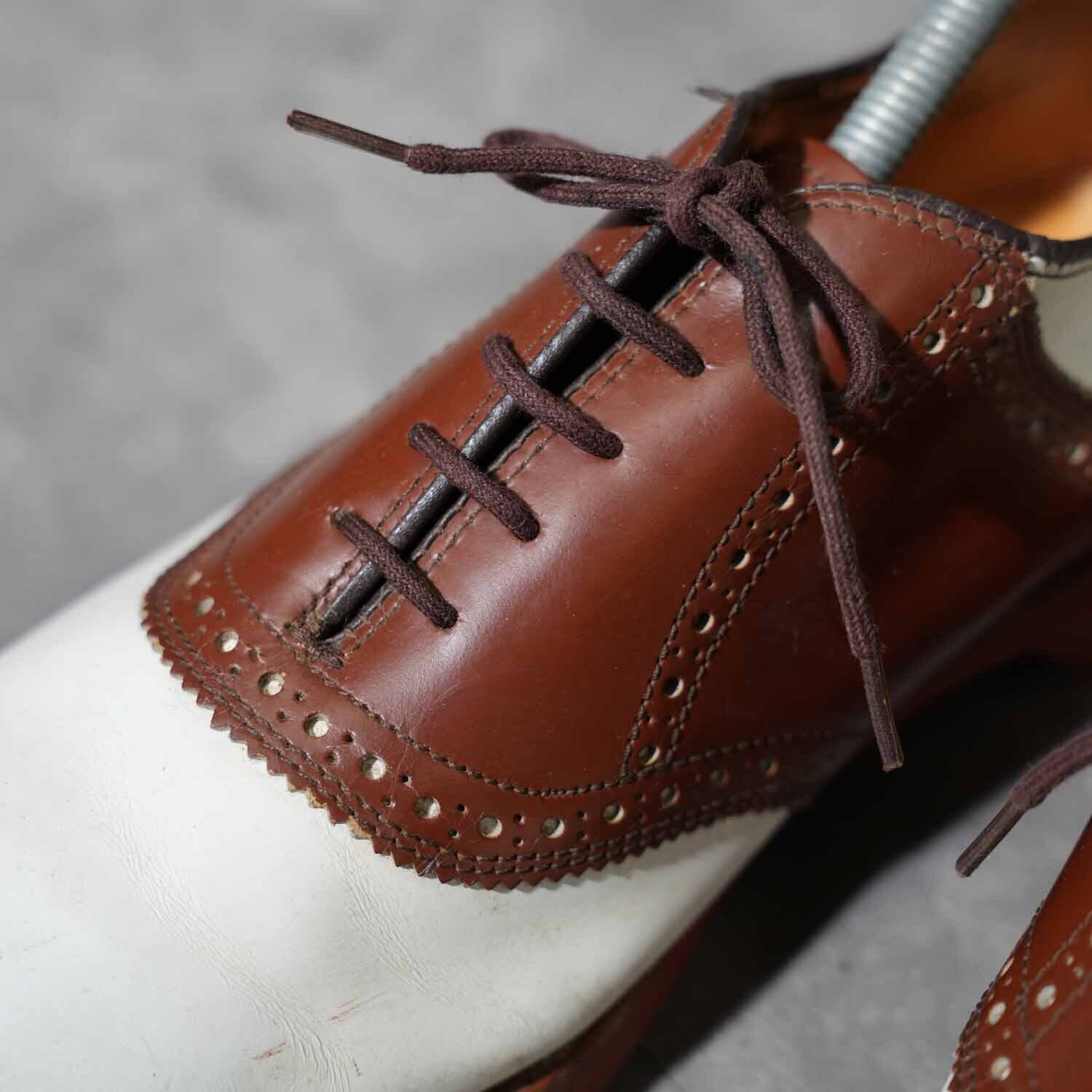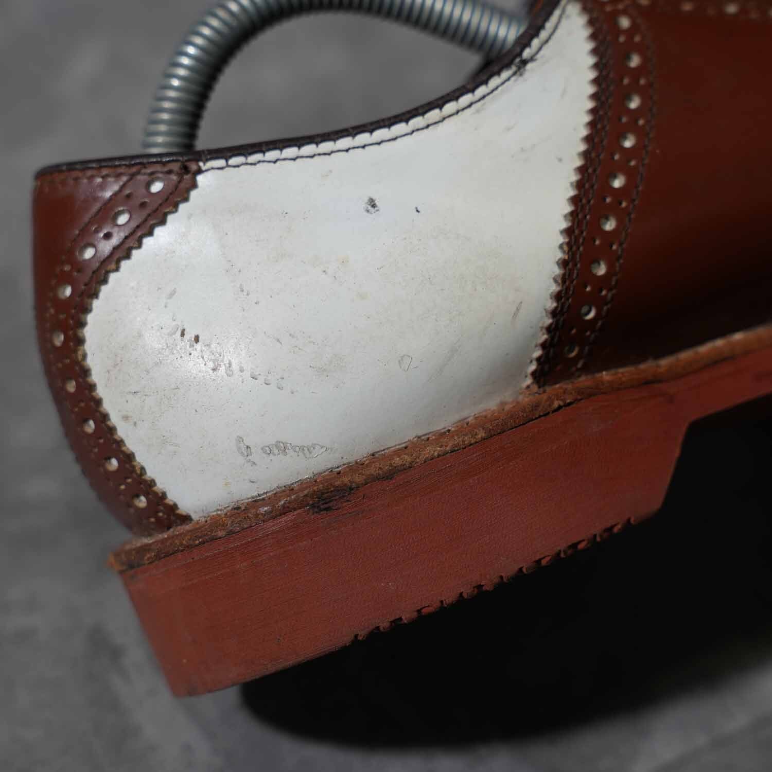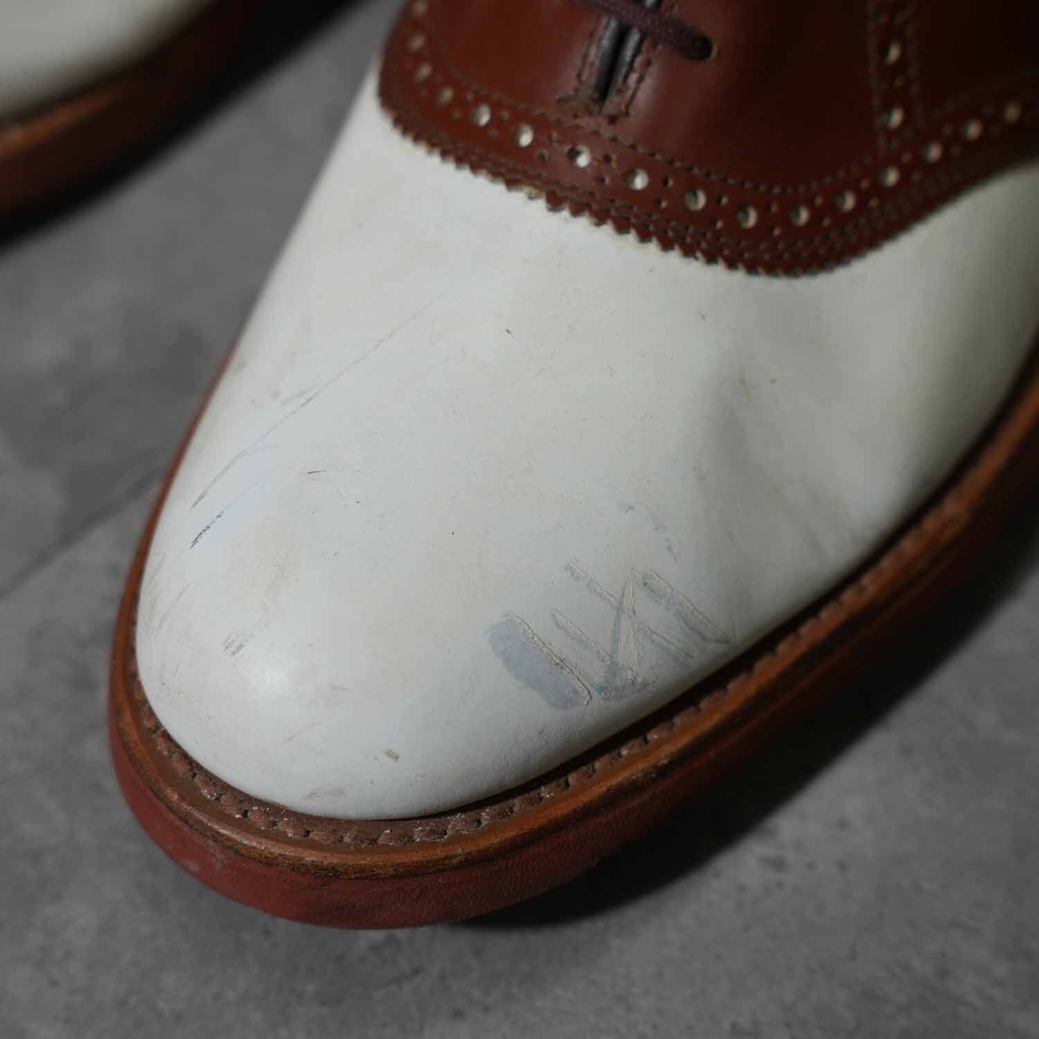 Vibramソール サドルシューズ ツートーン ホワイト×ブラウン レザーシューズ 8 1/2M(約26.5cm)|アメリカントラッド アメカジ 革靴 ブーツ 古着【furugi-1868】