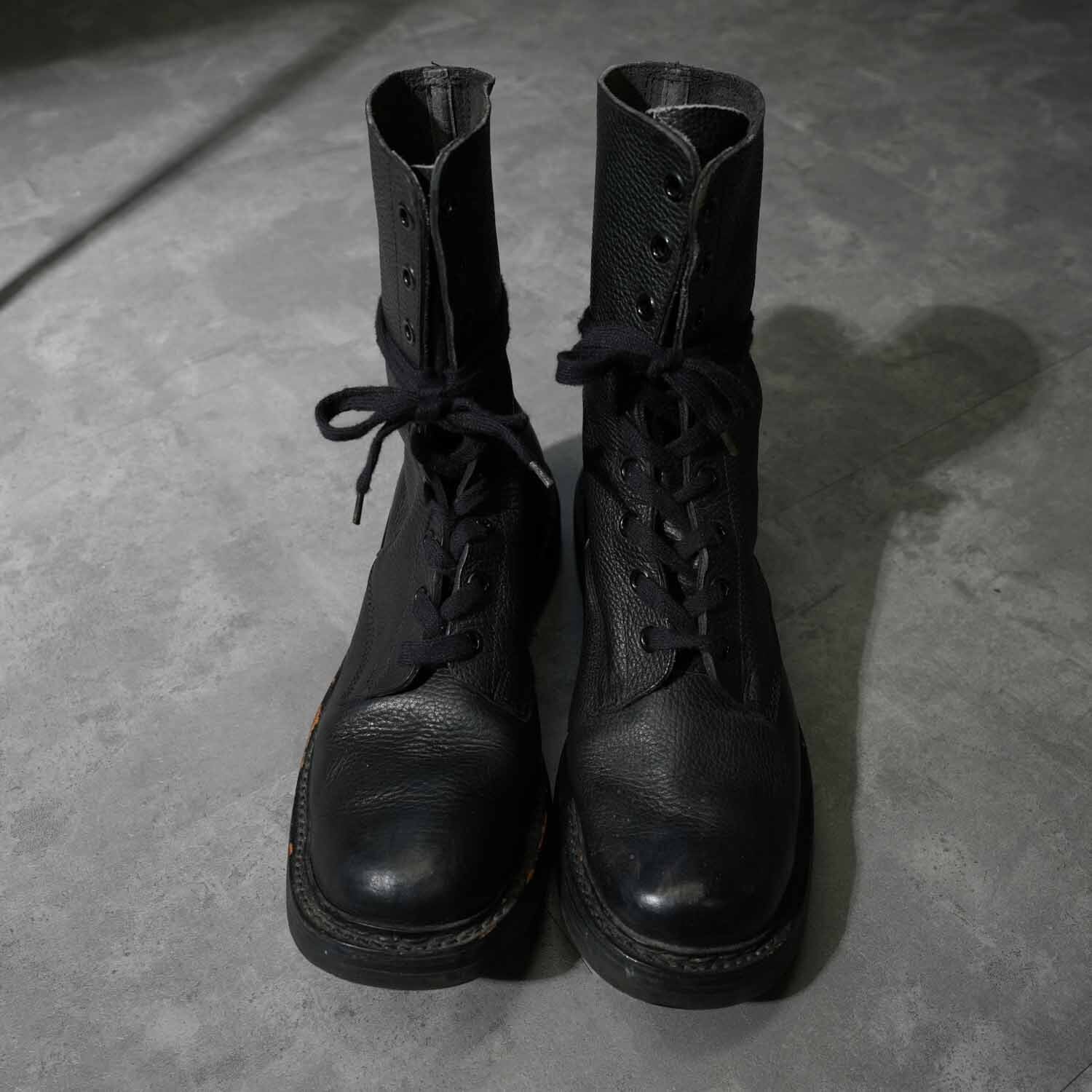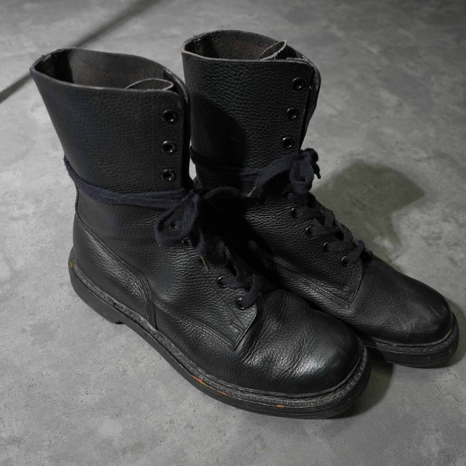 90s ベルギー軍 レザーブーツ 表記46(28.5cm前後)コンバットブーツ ミリタリーブーツ 9ホール / ドクターマーチン好きにも 革靴 ブーツ 古着【furugi-1871】