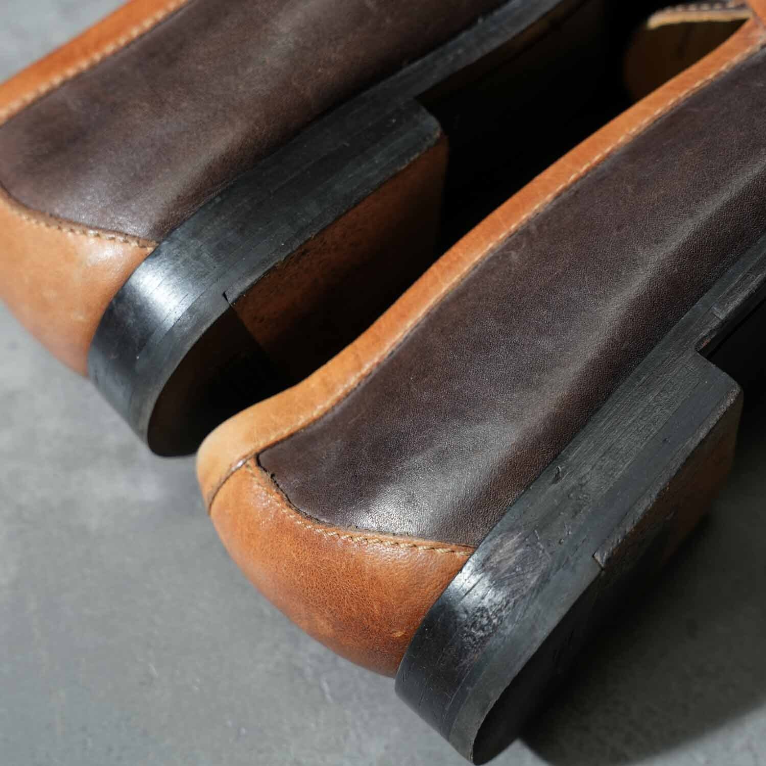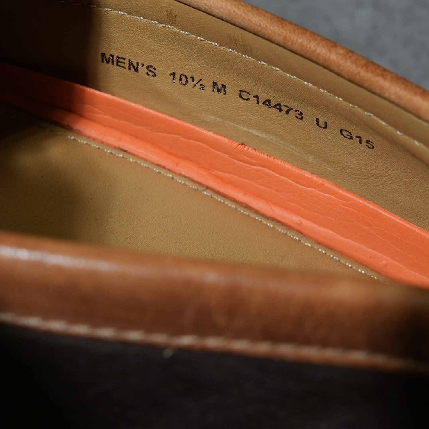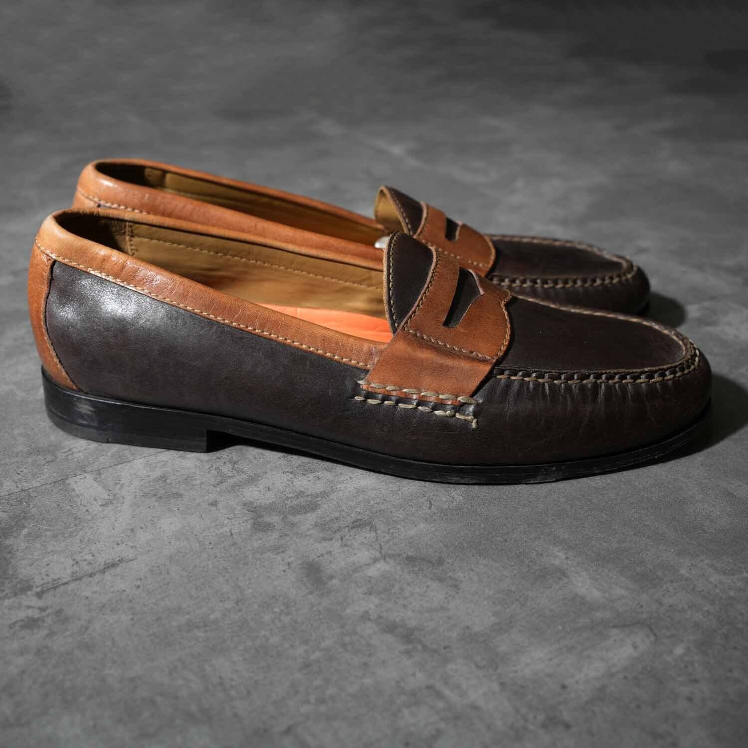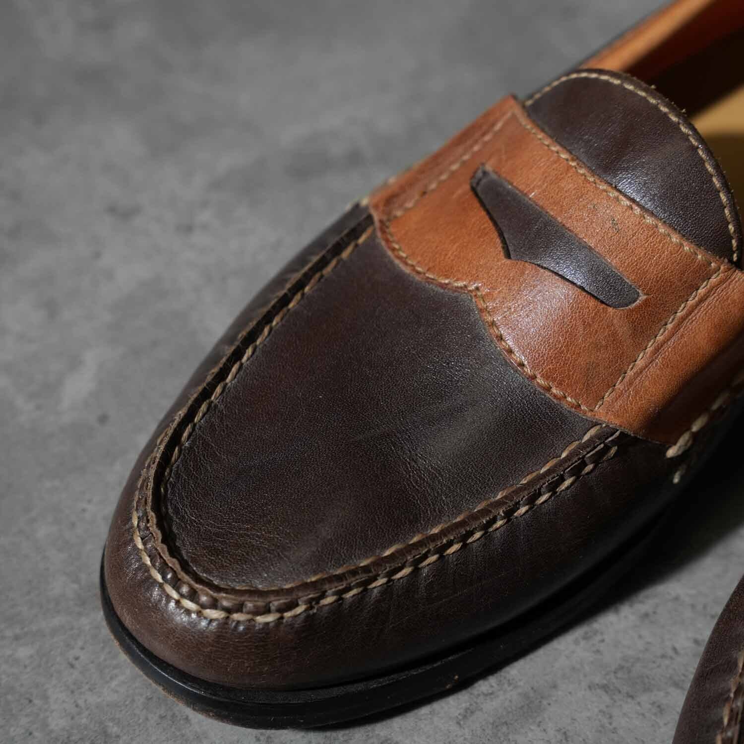アッパーにはブラウン系レザーを使用。履き込みによる自然なシワや艶の変化が見られ、古着ならではの表情がしっかりと育った個体。ローファーらしいスマートなトゥラインと、程よくカジュアルなバランス感は、デニムやチノパンはもちろん、スラックス外しにも相性良好。