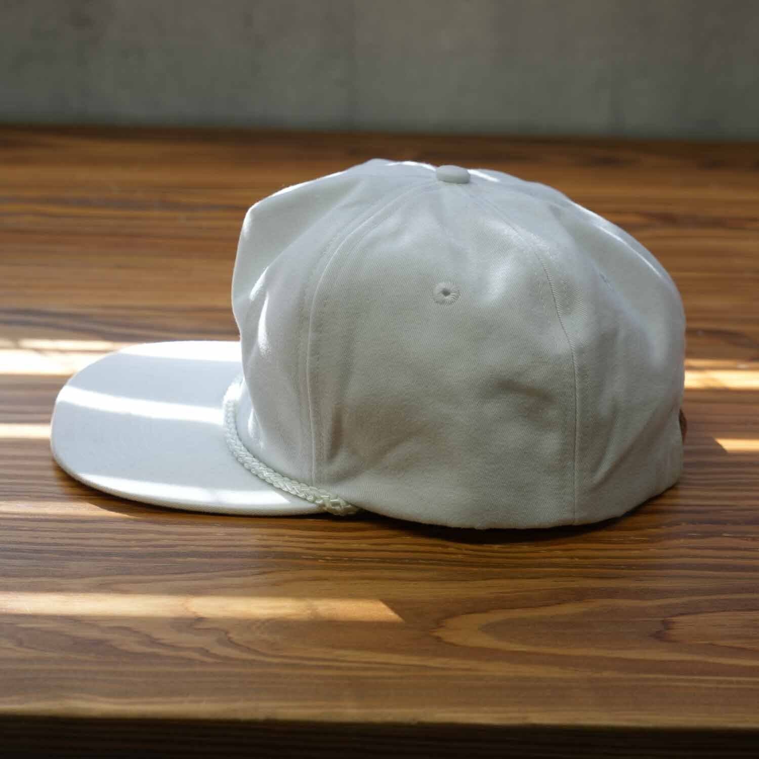 シンプルながらも存在感のあるロゴ配置。フラットバイザー。80〜90年代アメリカンプロモーションキャップ。