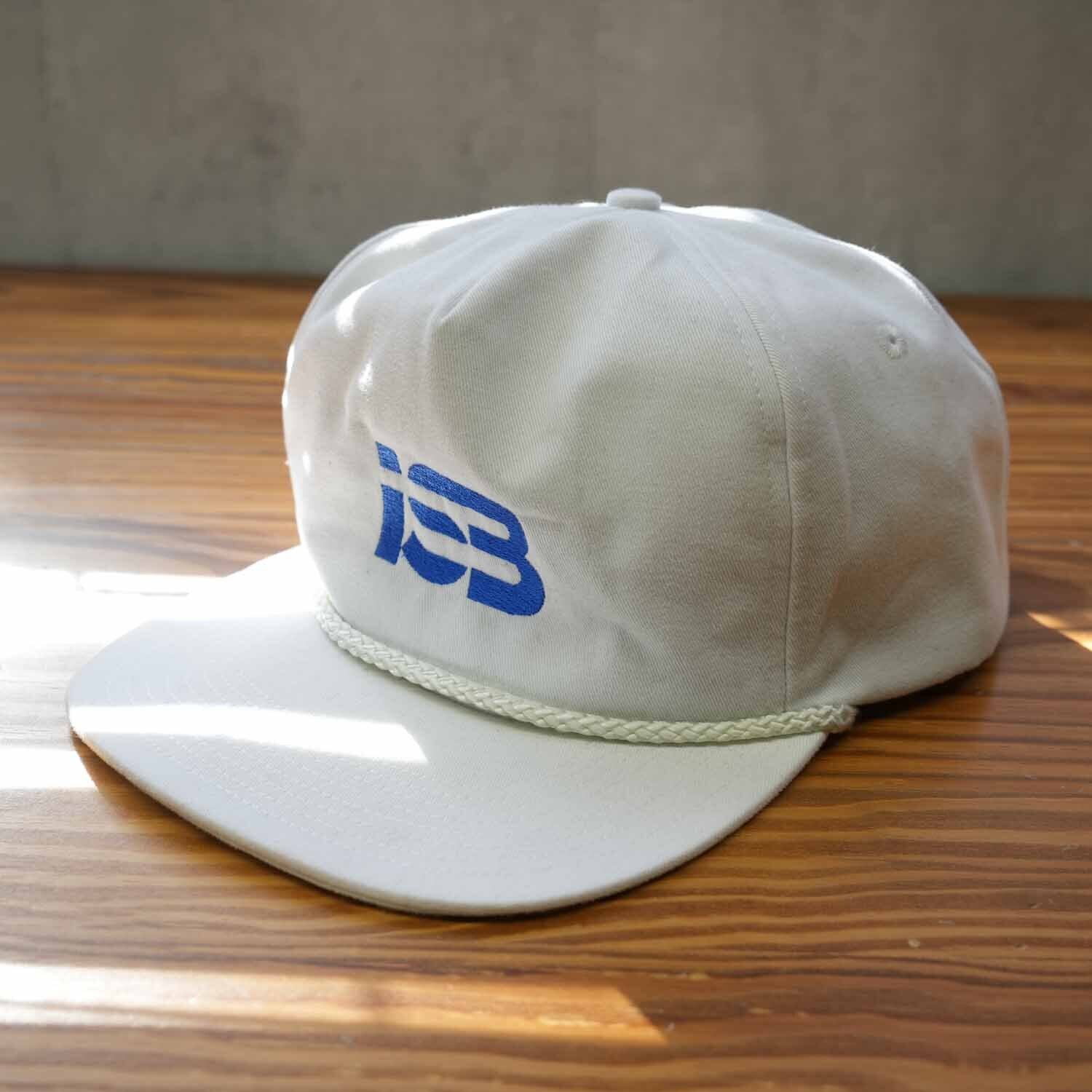 ホワイトボディに映えるブルーの「ISB」ロゴが印象的な、SAN SUN製ヴィンテージキャップ。