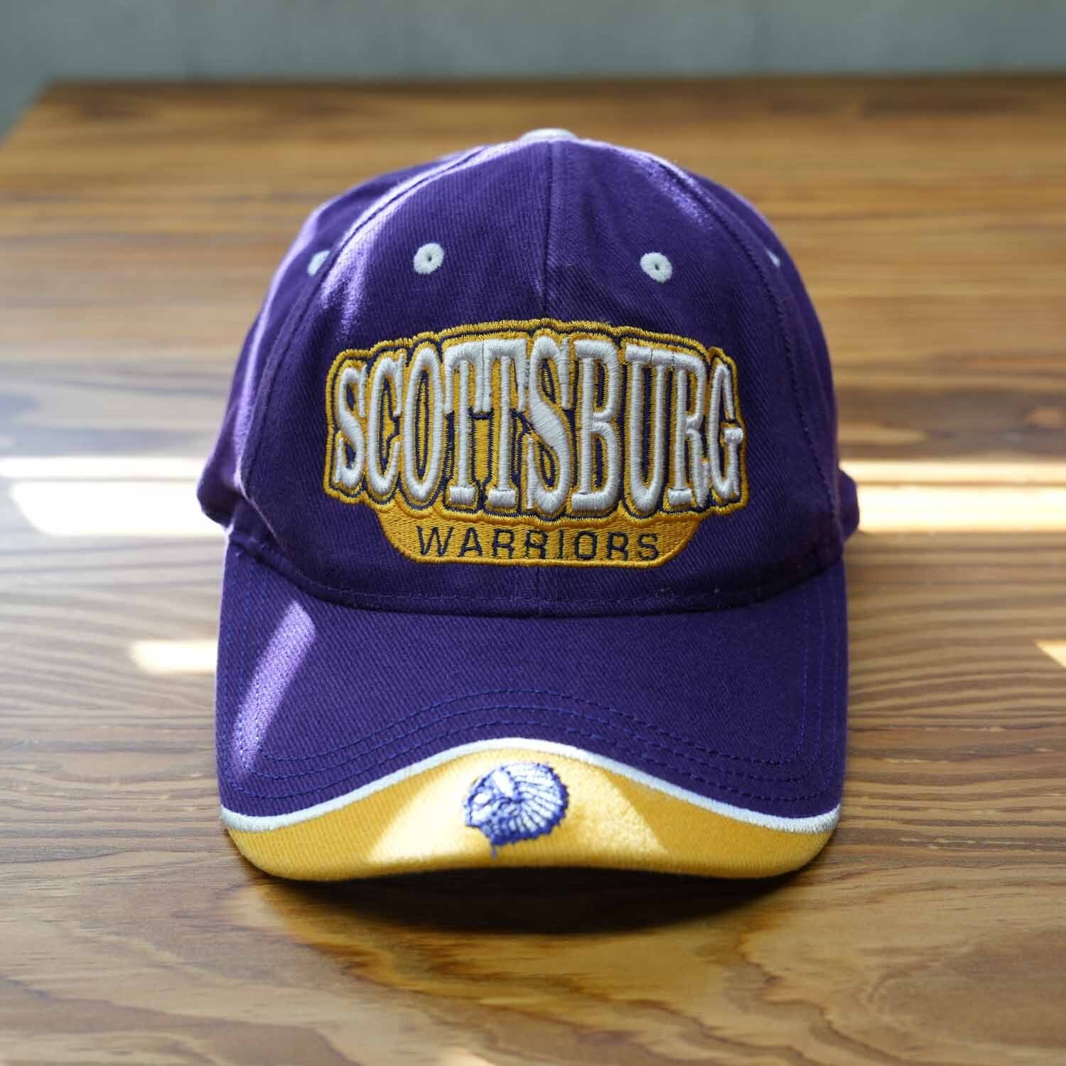 00s SCOTTSBURG WARRIORS 立体刺繍キャップ パープル系 バスケットボール スポーツチーム ロゴキャップ ストリート ノベルティ USA 企業ロゴ 古着 帽子【】