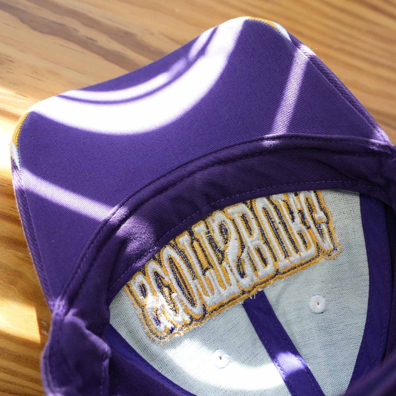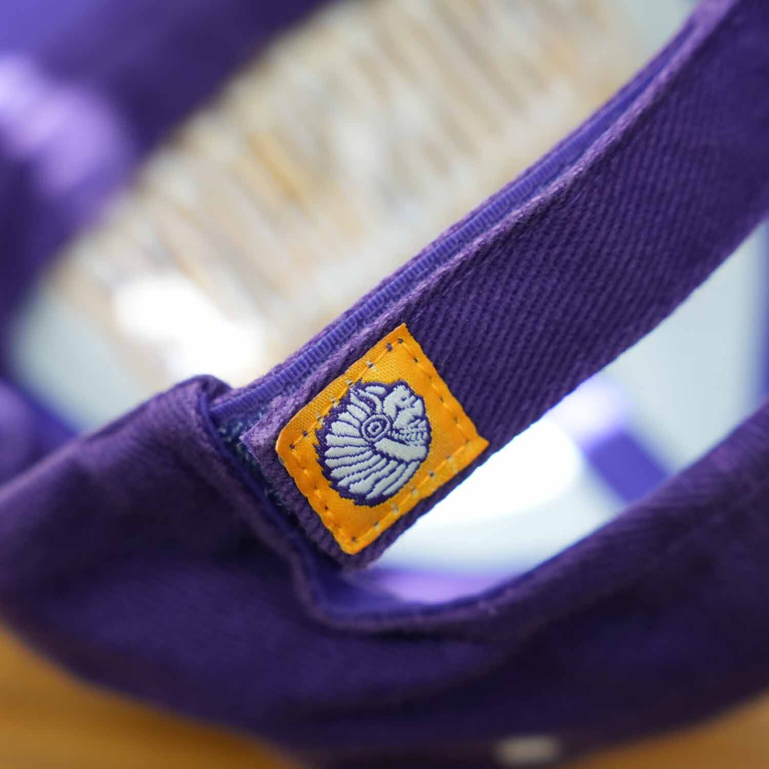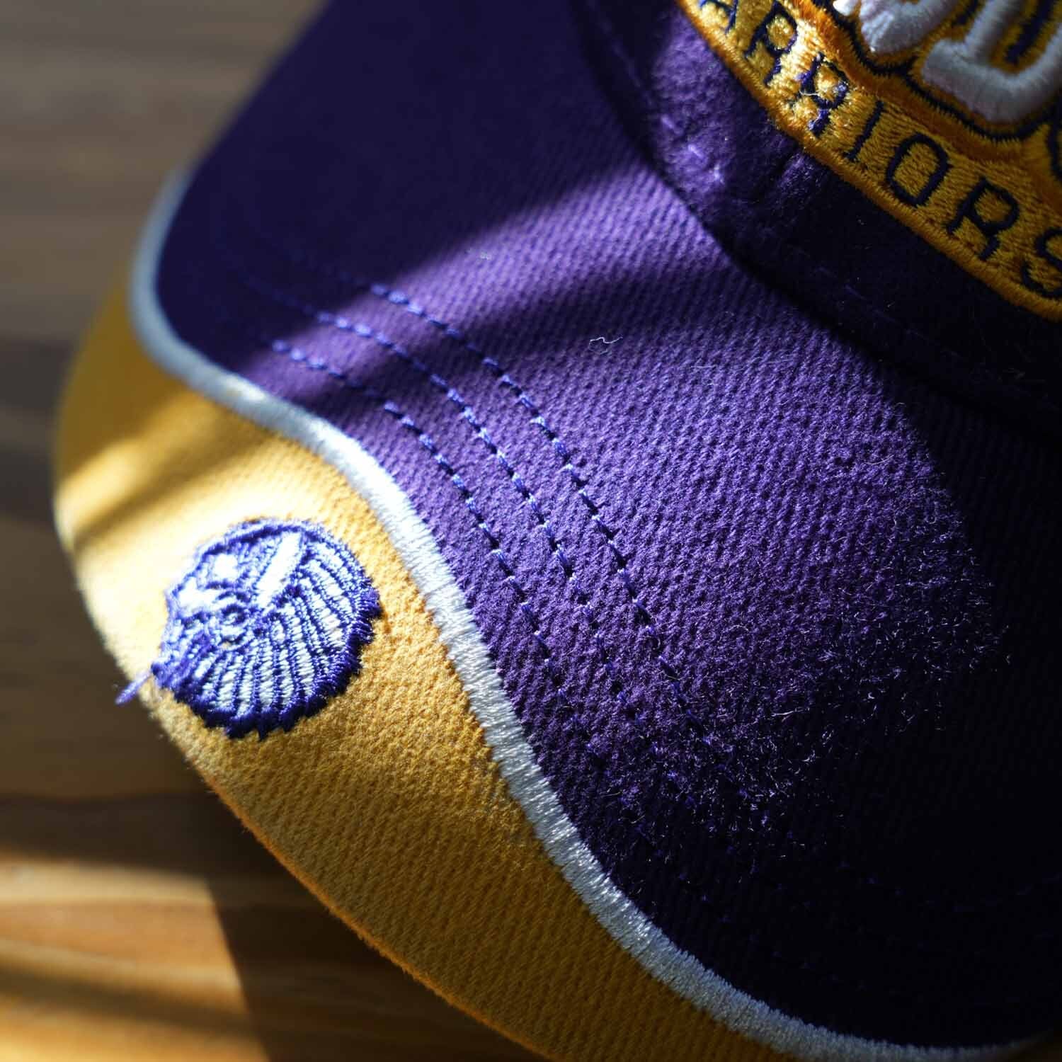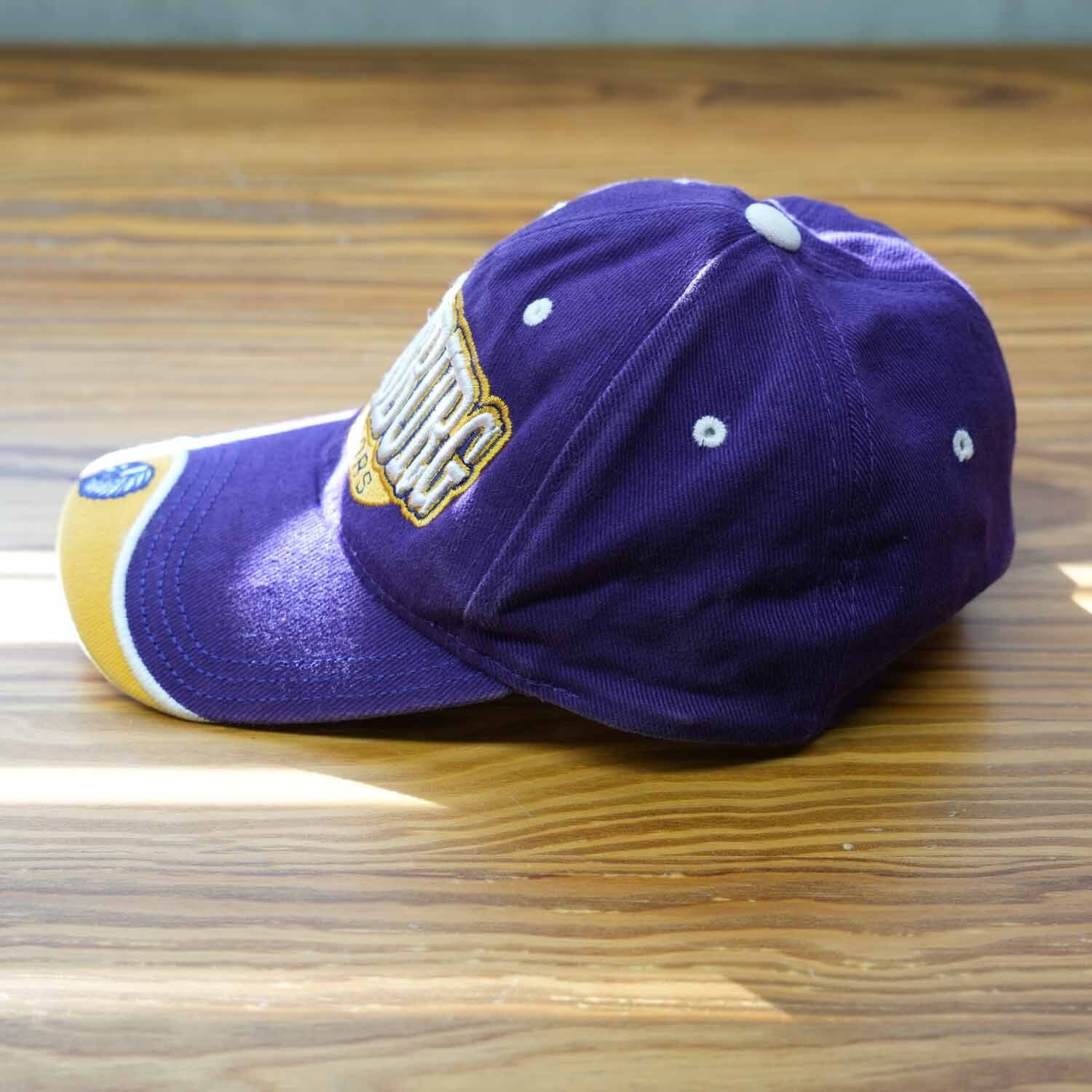 SCOTTSBURG WARRIORS(スコッツバーグ・ウォリアーズ)のロゴ刺繍が目を引く、パープルカラーのスポーツキャップ。フロントに大判のチームロゴ刺繍、ツバ先にはアイコン的な刺繍ワンポイントを配置した、アメリカンスポーツらしい存在感のある一品です。
