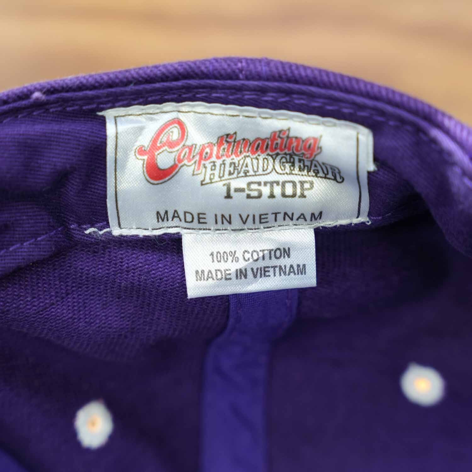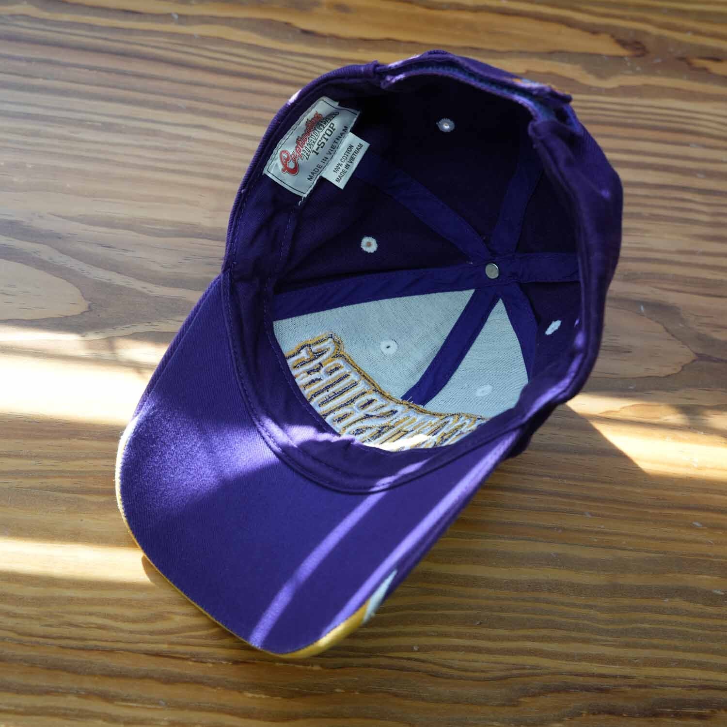 内タグには「100% COTTON」表記が確認でき、スポーツキャップらしいタフさと被り心地を兼ね備えています。タグ仕様やデザインのテイストから、比較的近年(2000年代以降)のアイテムと思われます。