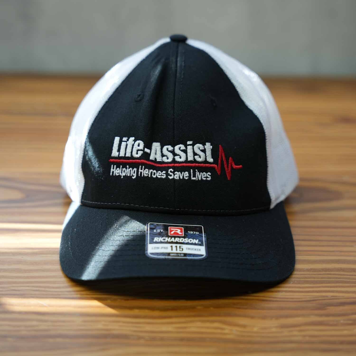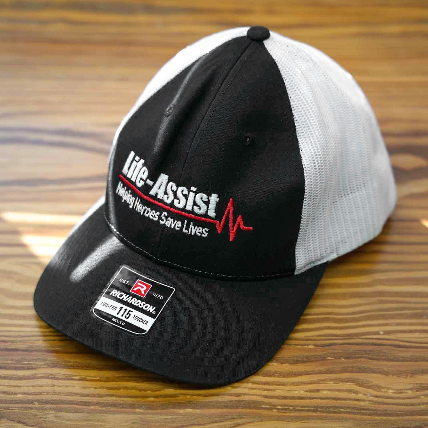 Richardson リチャードソン 115 トラッカーキャップ メッシュキャップ DEADSTOCK 「Life-Assist Helping Heroes Save Lives」ブラック×ホワイト 帽子 アメカジ USA 企業【】