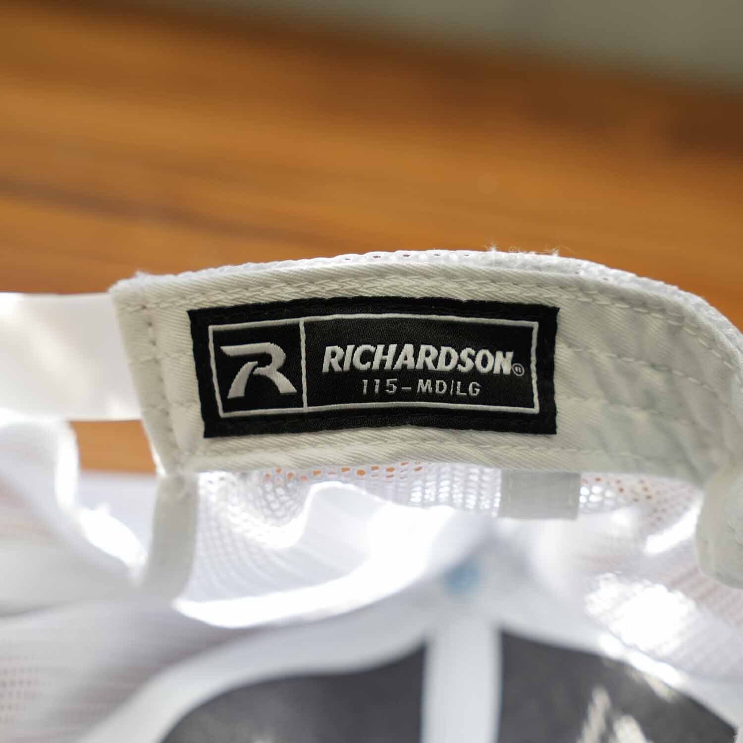 内タグには「Richardson 115 / MD-LG」表記、ツバ裏やスナップバックにもRichardson刻印が入り、量産ノベルティとは一線を画す作り。デッドストックに近いコンディションで、型崩れや目立つダメージは見られません。
