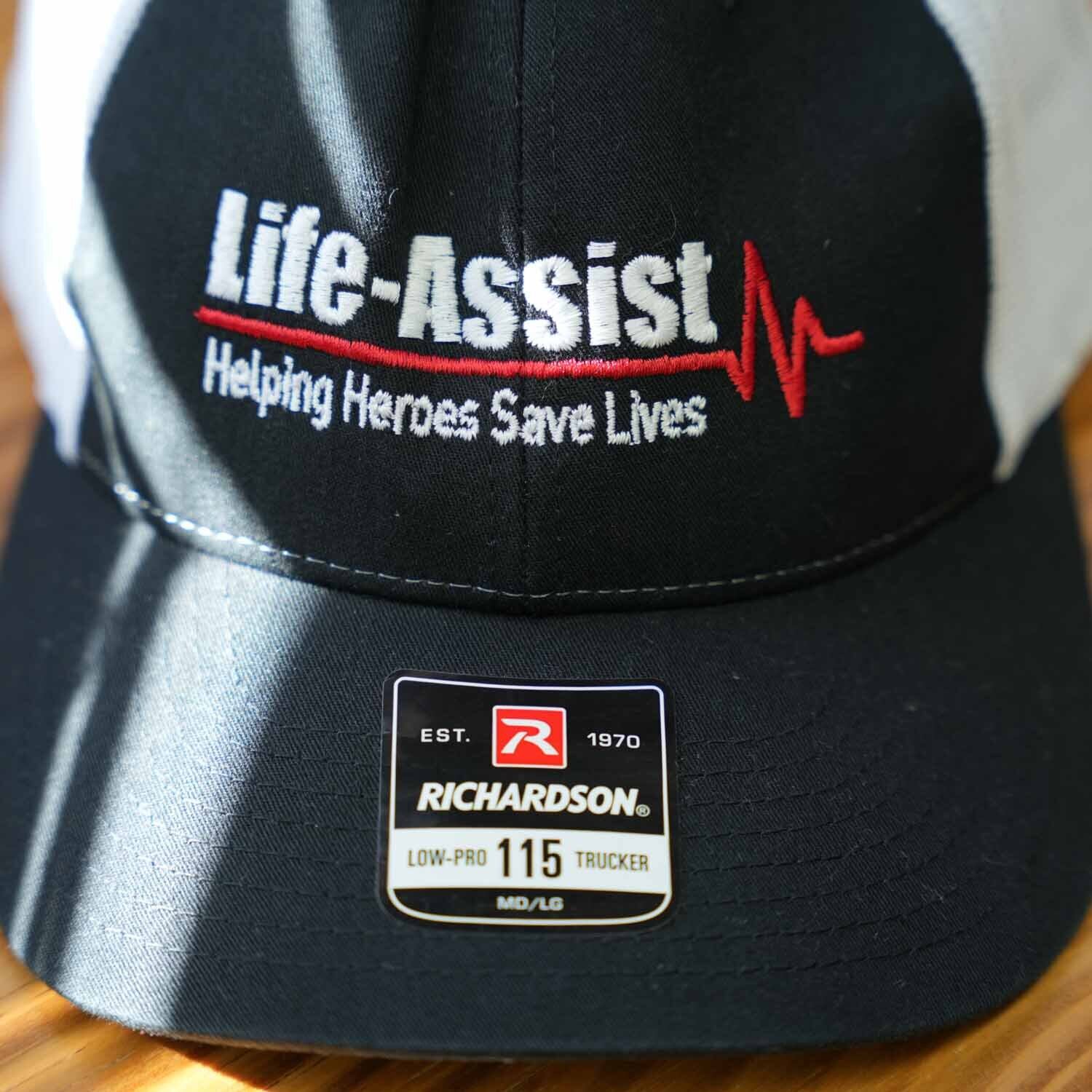 フロントには “Life-Assist / Helping Heroes Save Lives” の刺繍が入り、ハートビートモチーフが印象的な一品です。