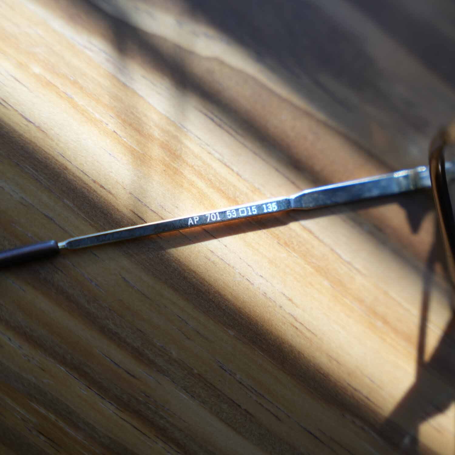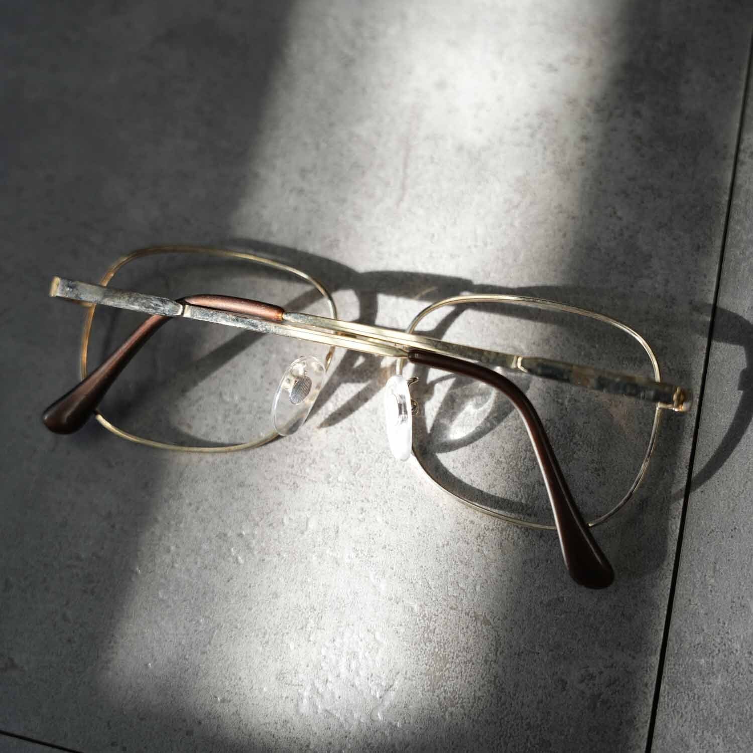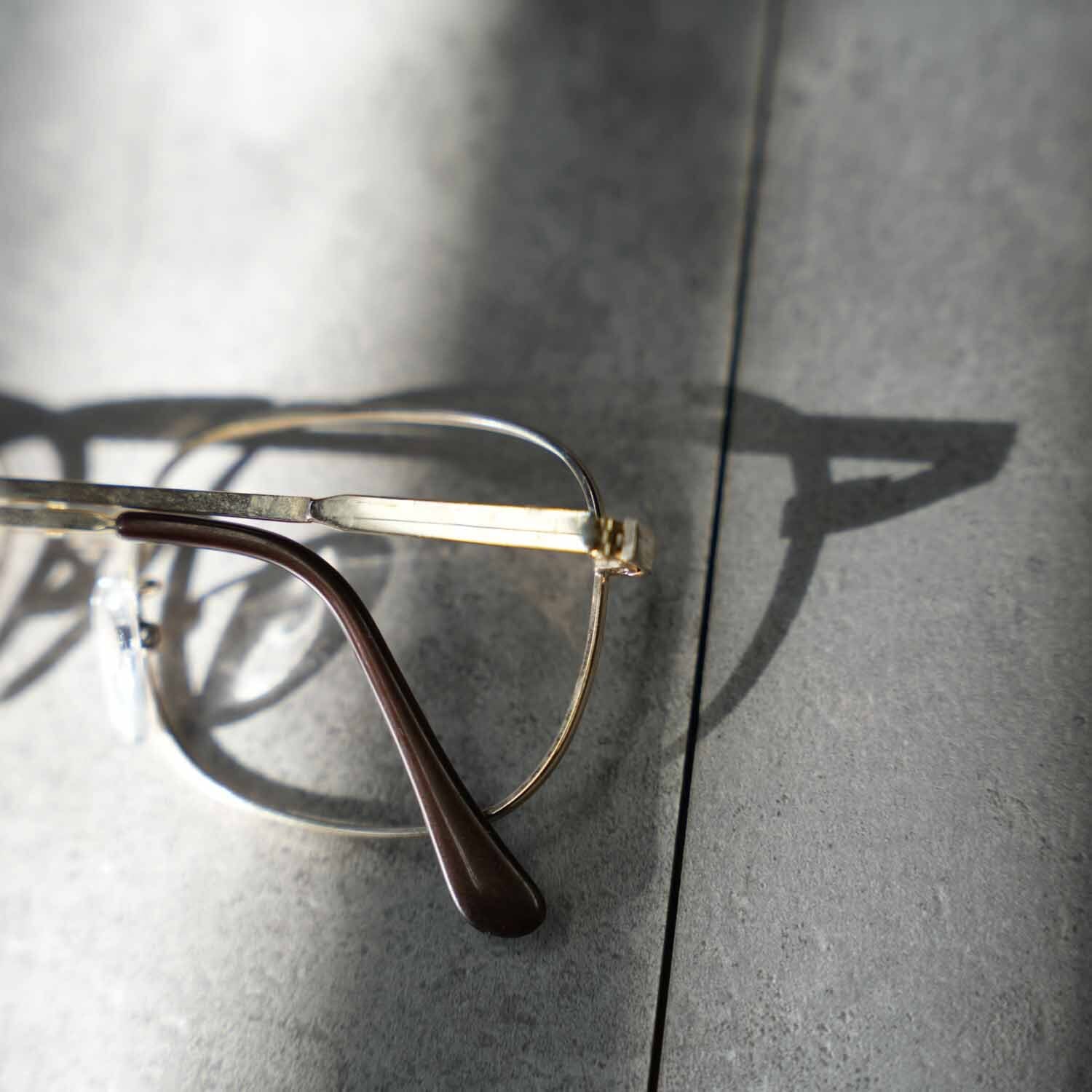 繊細なメタルワーク、鼻あて一体型のクラシカルなディテール、ブラウンカラーのモダン(耳掛け)部分など、60年代らしい意匠が随所に見られる点も古着好きには刺さるポイント。