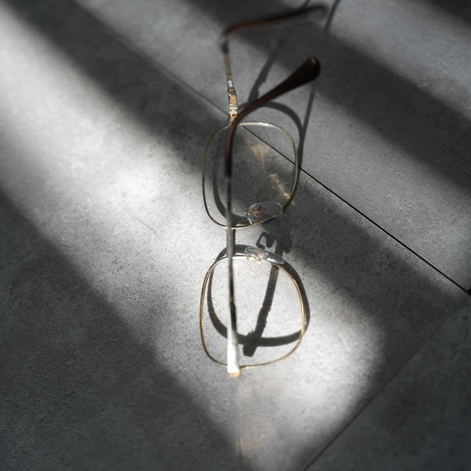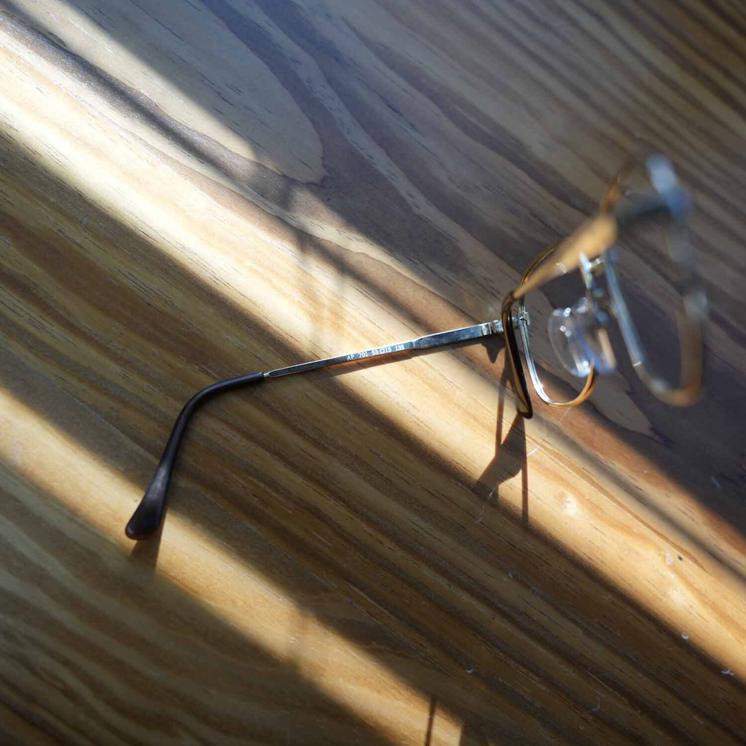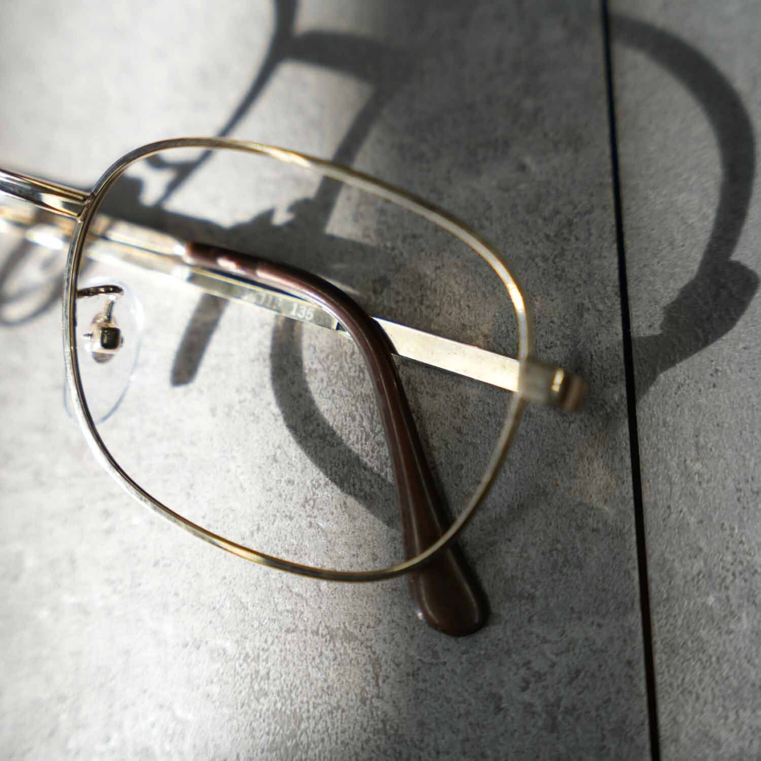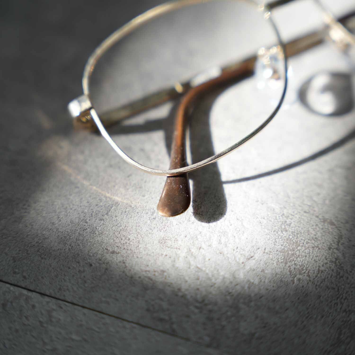 繊細なメタルワーク、鼻あて一体型のクラシカルなディテール、ブラウンカラーのモダン(耳掛け)部分など、60年代らしい意匠が随所に見られる点も古着好きには刺さるポイント。