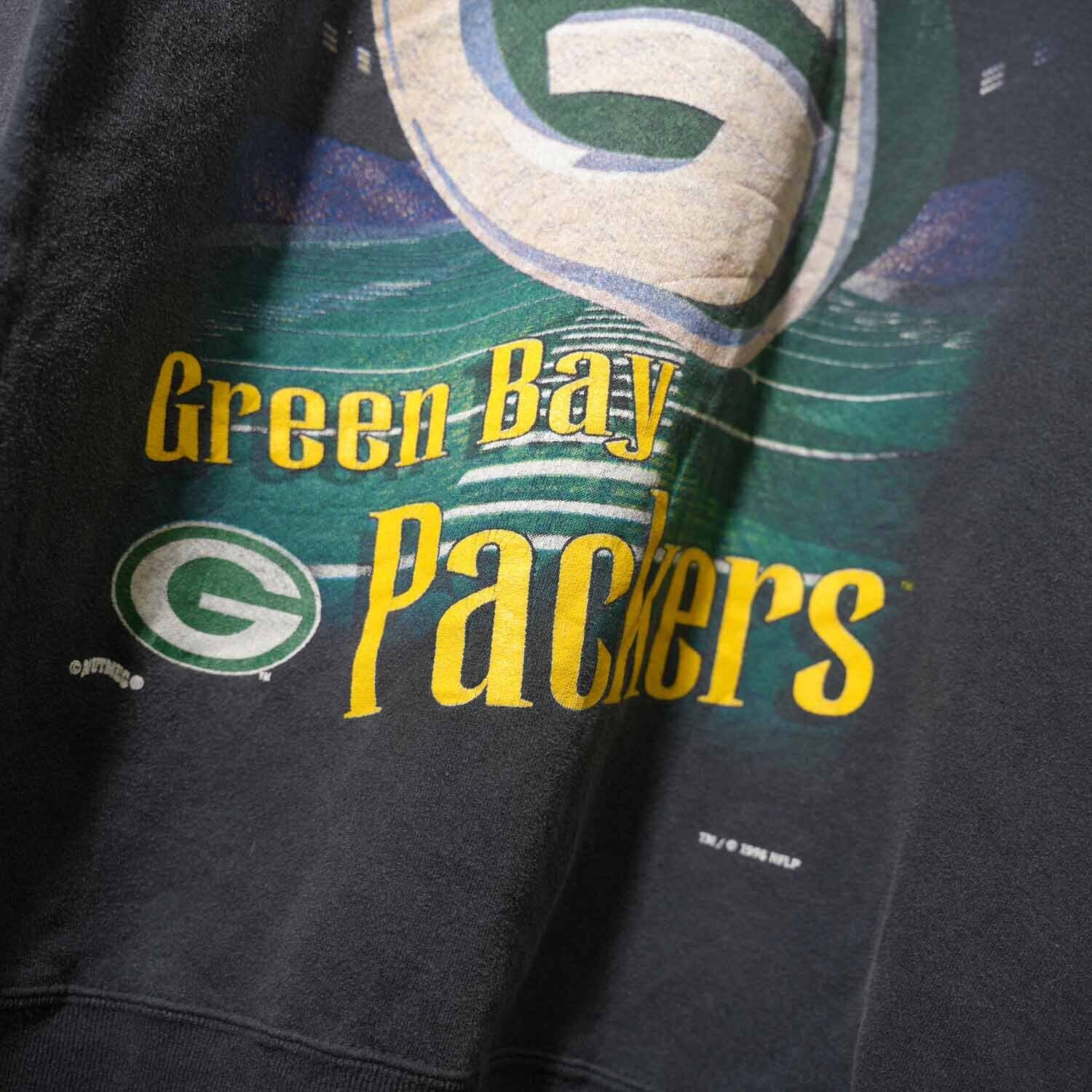 90s グリーンベイ・パッカーズ Green Bay Packers プリントスウェット Lee SPORT グッドフェード(ブラック) NFL公式 1995 コピーライト アメカジ ストリート 古着【furugi-1826】