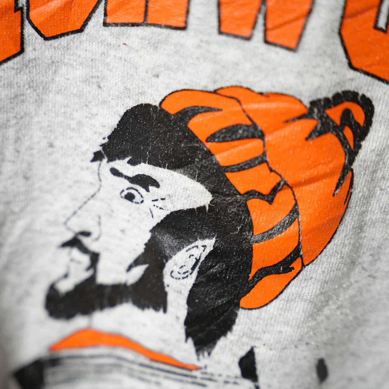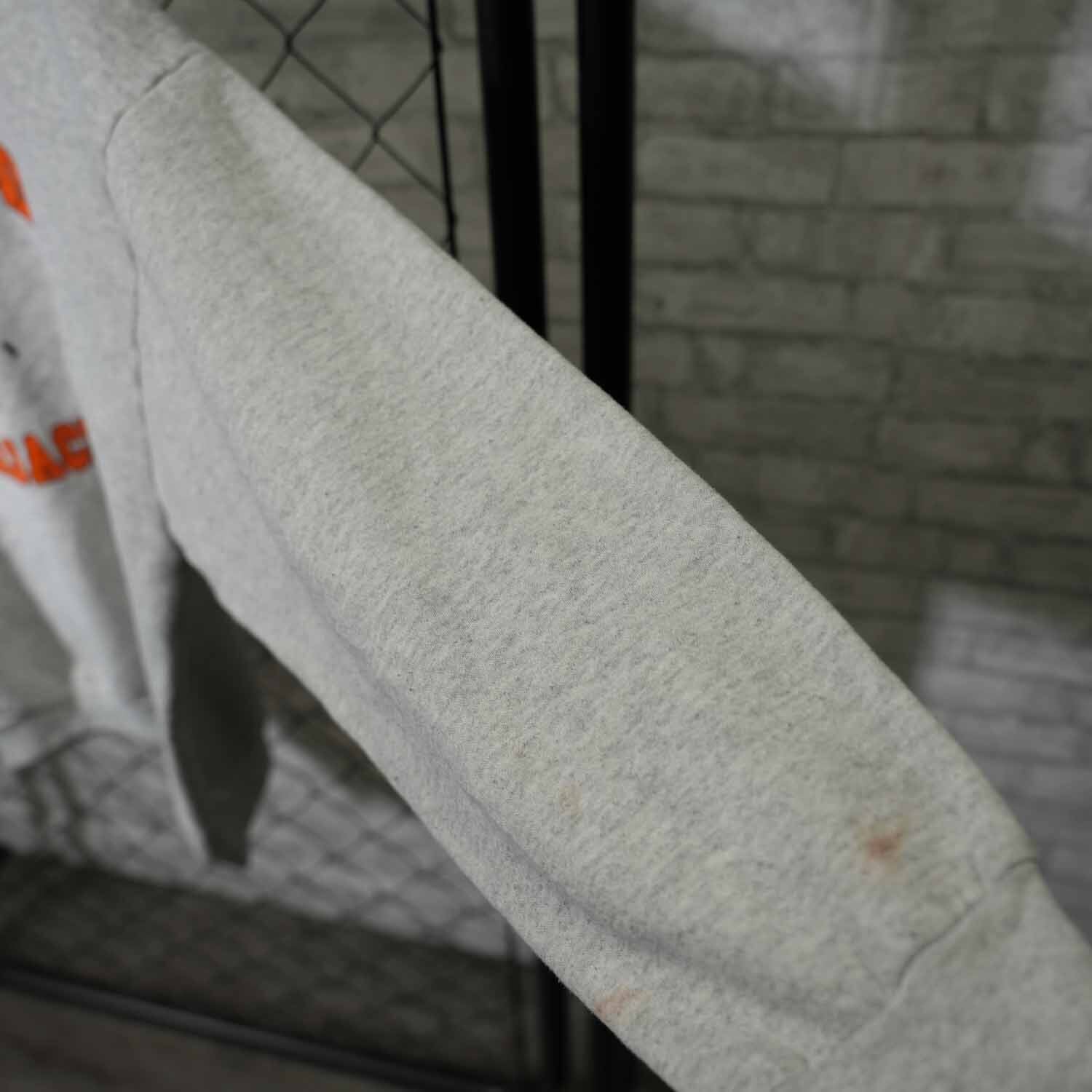プリント部分には経年によるクラックやかすれが見られ、ヴィンテージらしい表情がしっかりと感じられるコンディション。無地スウェットでは出せない、一点物ならではの雰囲気が魅力です。