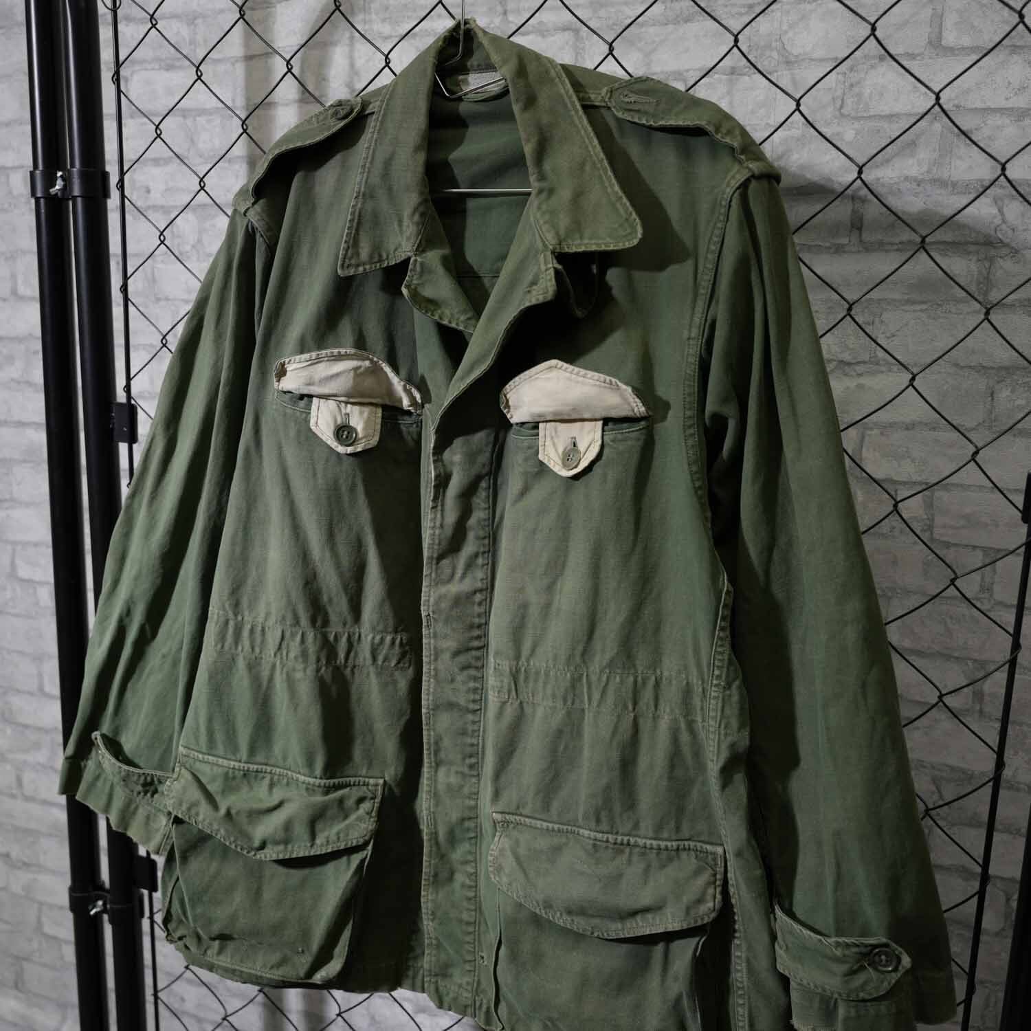 60s SAINT-CERÉ(サン・セレ) フランス軍系 ミリタリージャケット 実測M~Lサイズ程度 アイボリーアクセント スタンドネック 推定1960年代頃 古着 アメカジ ヴィンテージ 【furugi-1875】