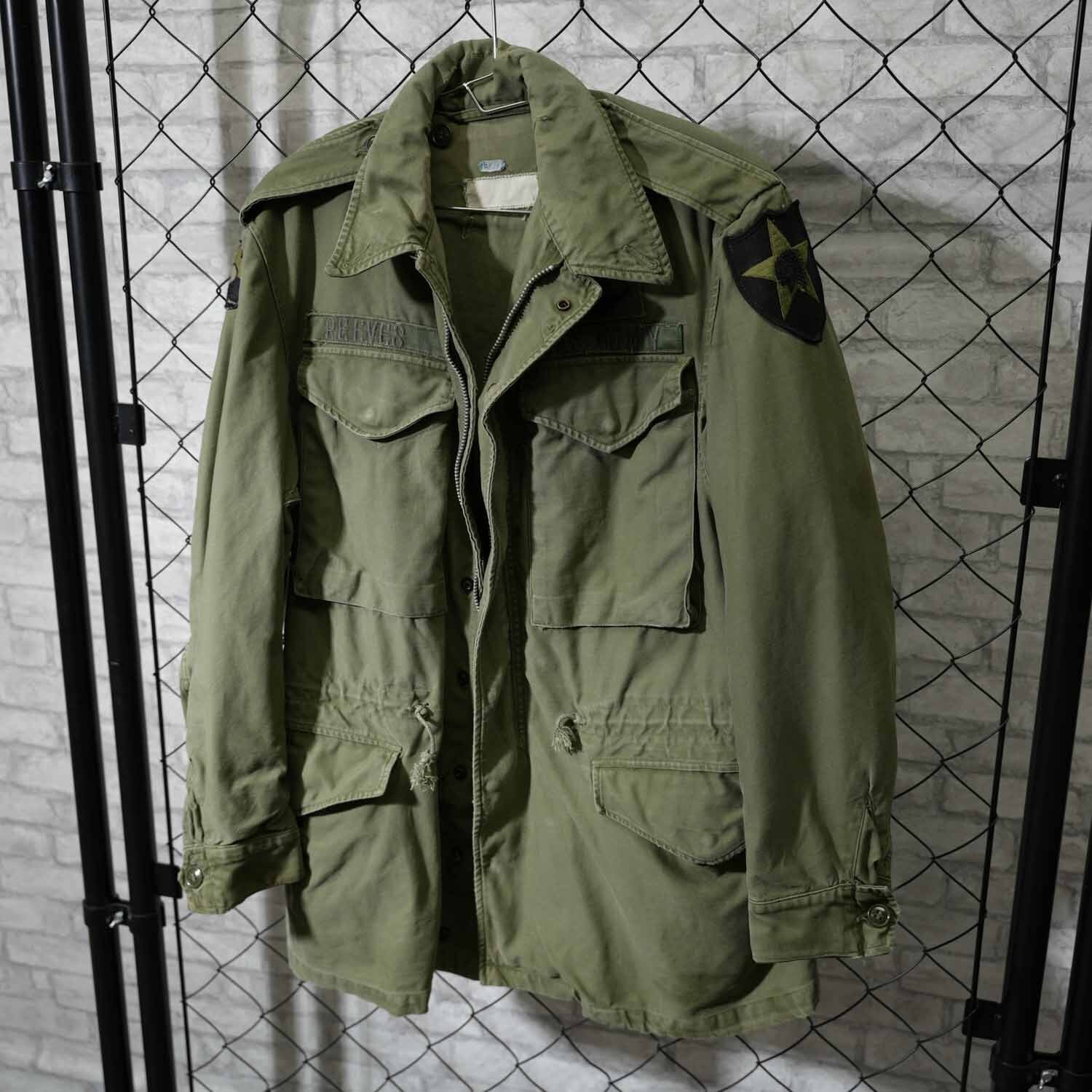 50s~60s U.S. ARMY M-51 フィールドジャケット 実測M~Lサイズ程度 ミリタリー CONMARジッパー ワッペン付き アーミー 軍物 古着【furugi-1876】