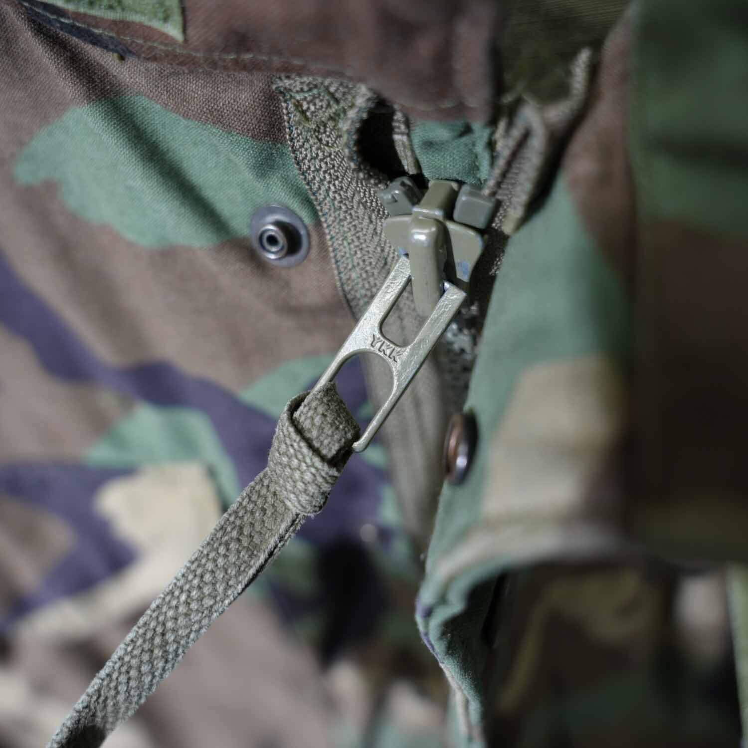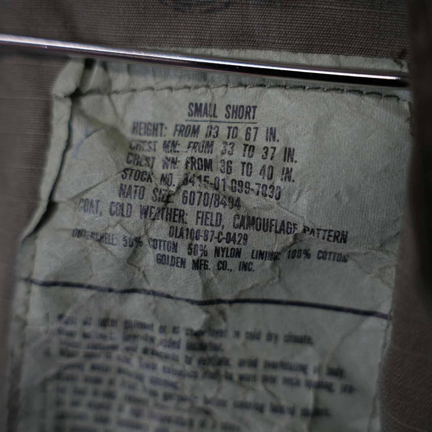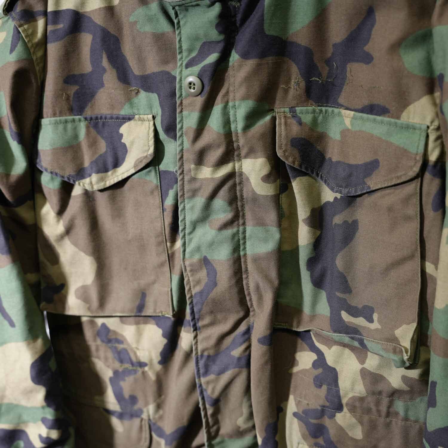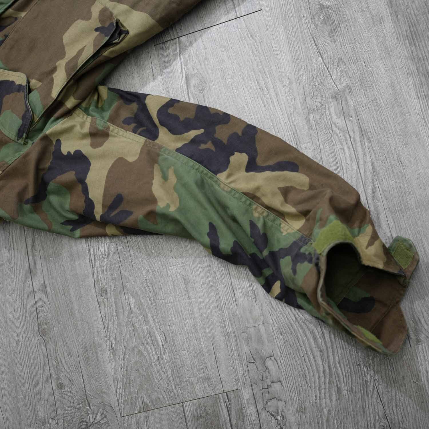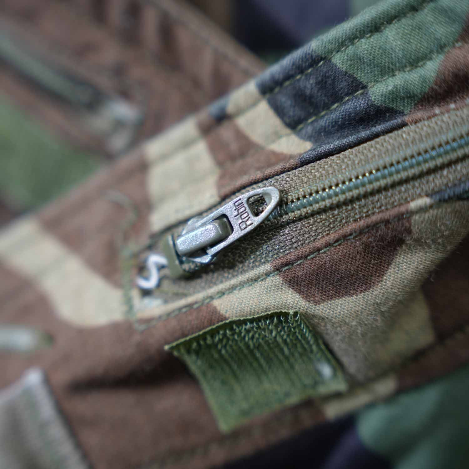 こちらはウッドランドカモフラージュを採用した一着で、タグ表記および仕様から1980年代後半の個体と考えられます。