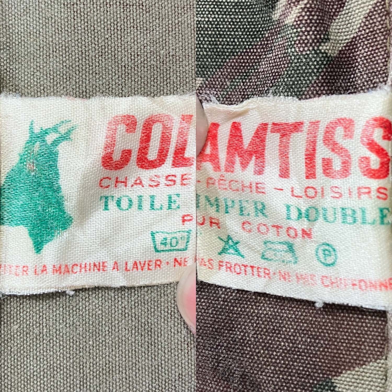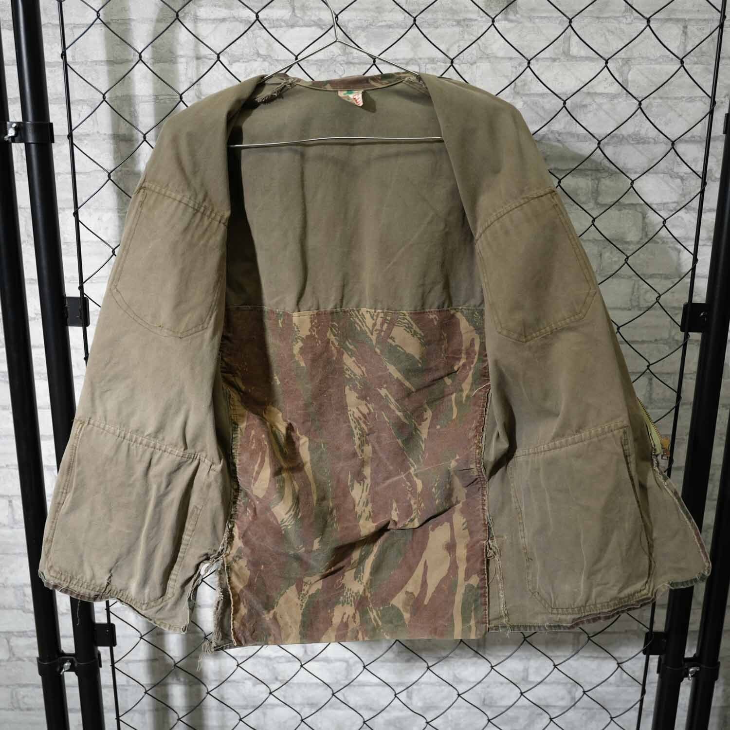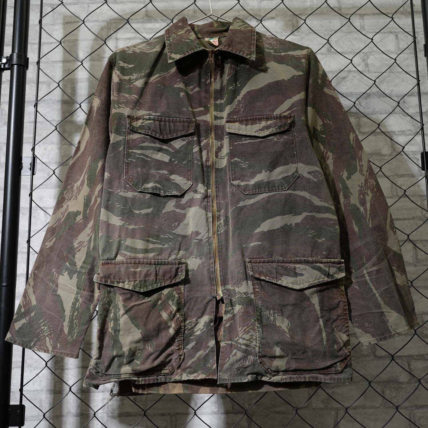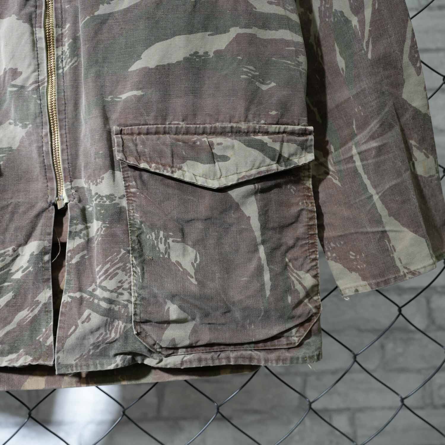 60s COLAMTISS フレンチカモ フィールドジャケット S~Mサイズ程度 AILEEジッパー 背面ポケット付き 1950〜60年代頃 リザードカモ ハンティングジャケット コットン ユーロヴィンテージ 古着 【furugi-1878】
