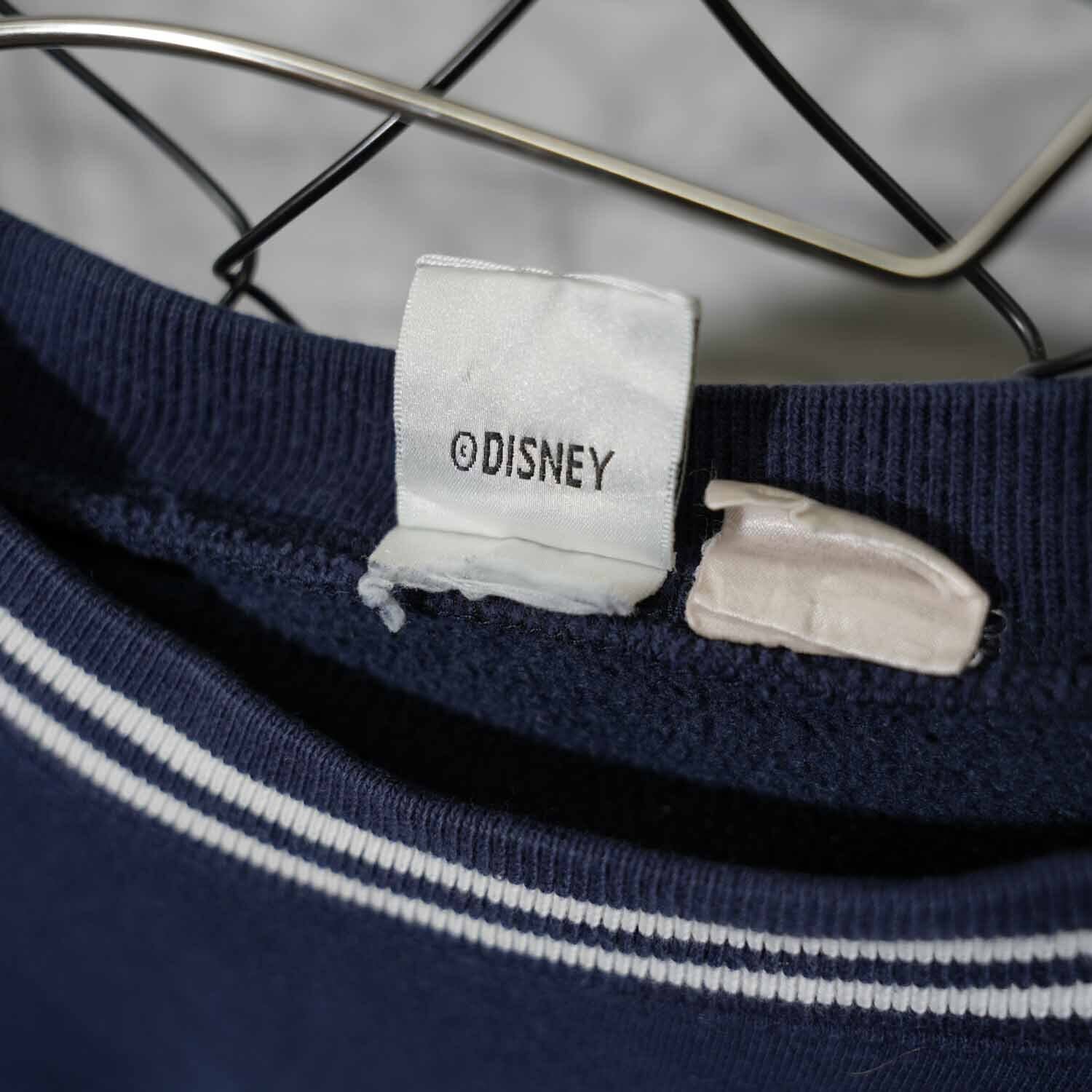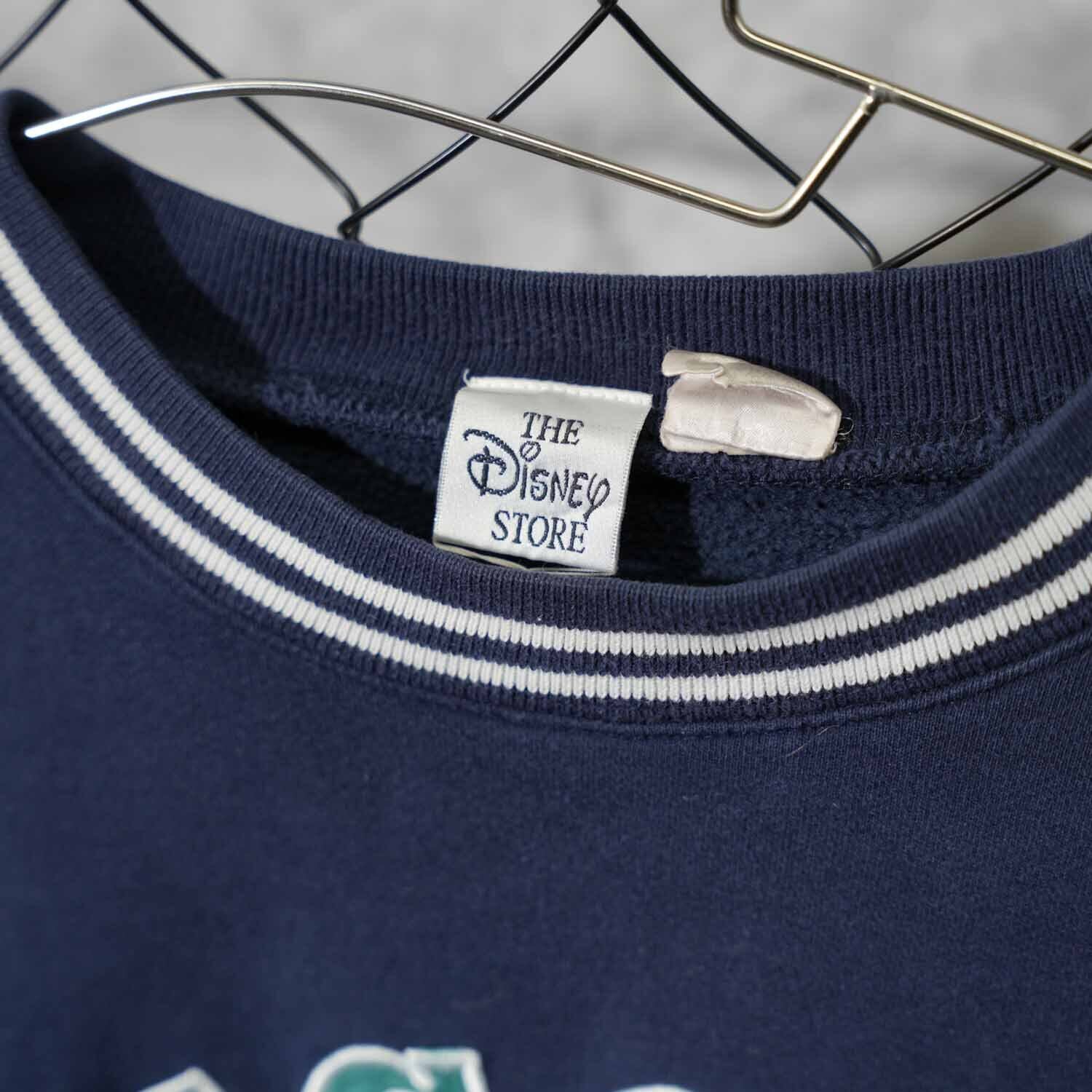 タグは The Disney Store。首元・袖・裾にはライン入りリブを採用しており、どこかカレッジスウェットを思わせるデザインバランス。この仕様やタグデザインから、1990年代〜2000年代初頭頃のアイテムと思われます。