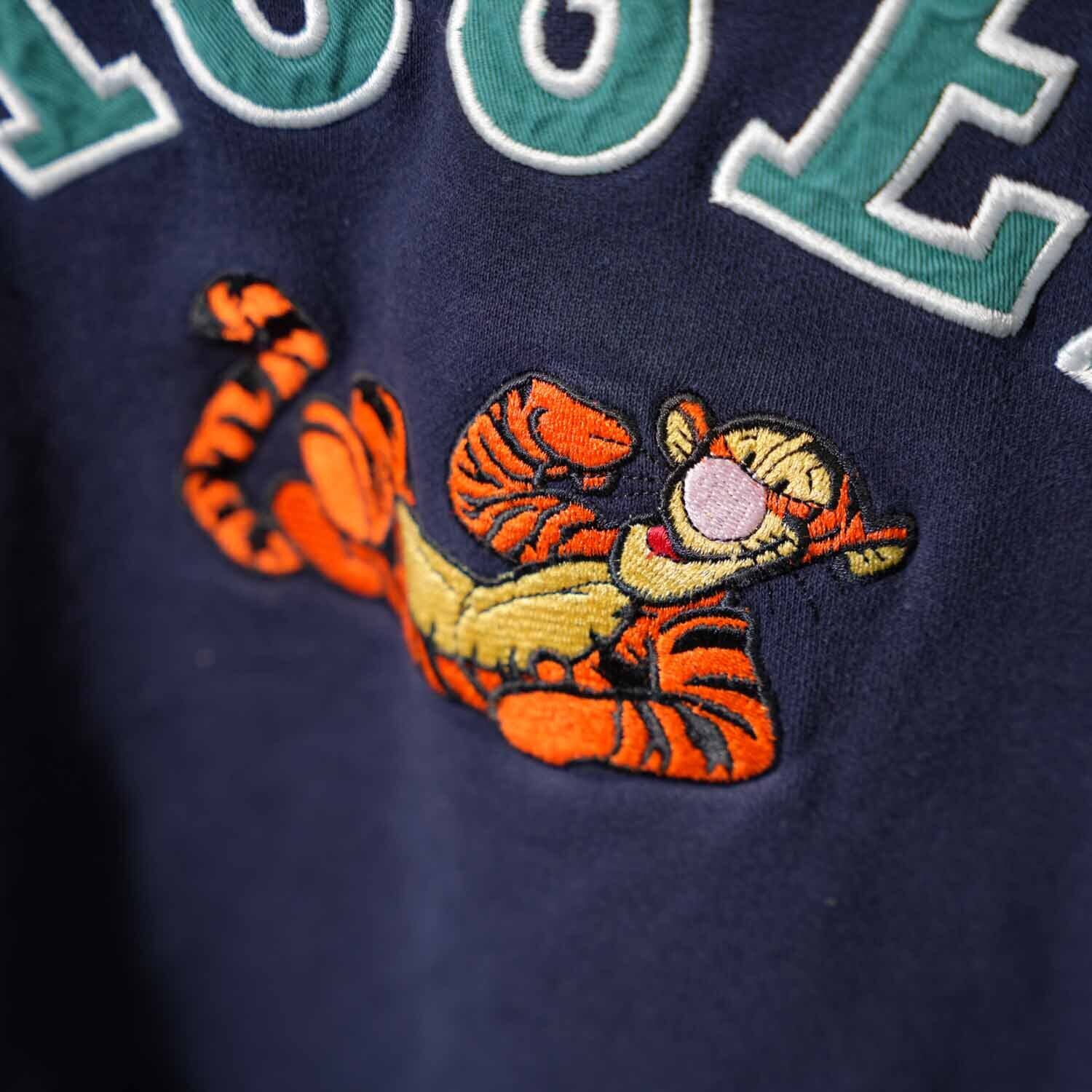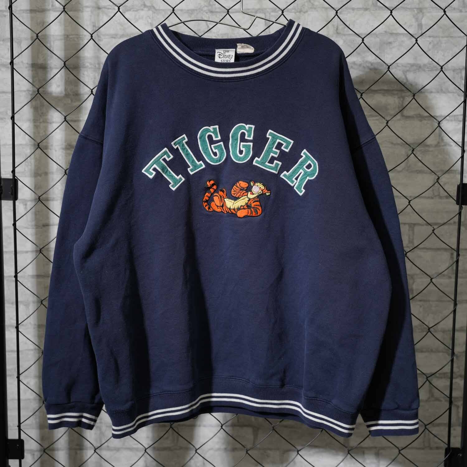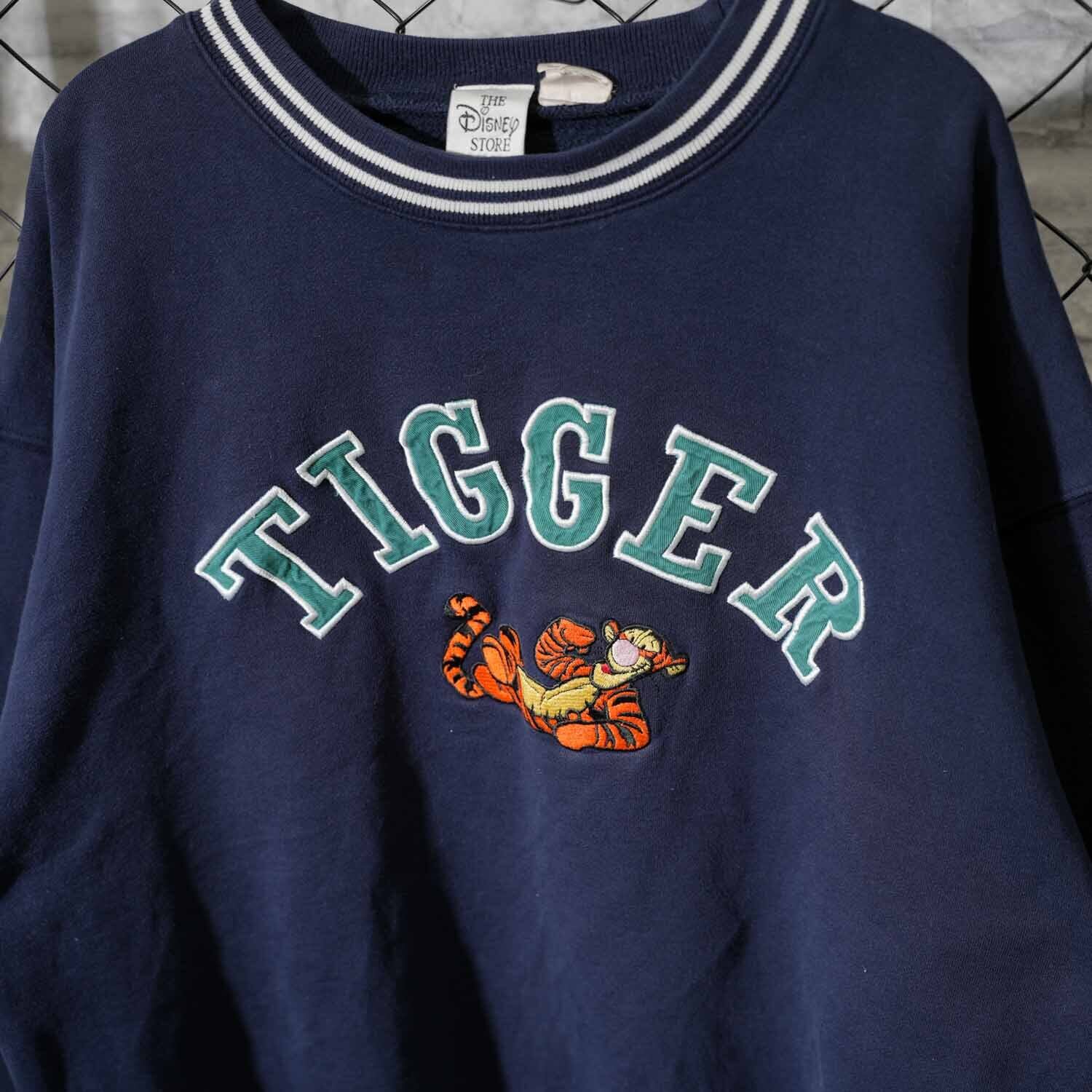 90s Disney TIGGER 刺繍スウェット 実測M~Lサイズ程度 The Disney Store ネイビー 90年代頃 キャラクター アメカジ 古着【furugi-1825】