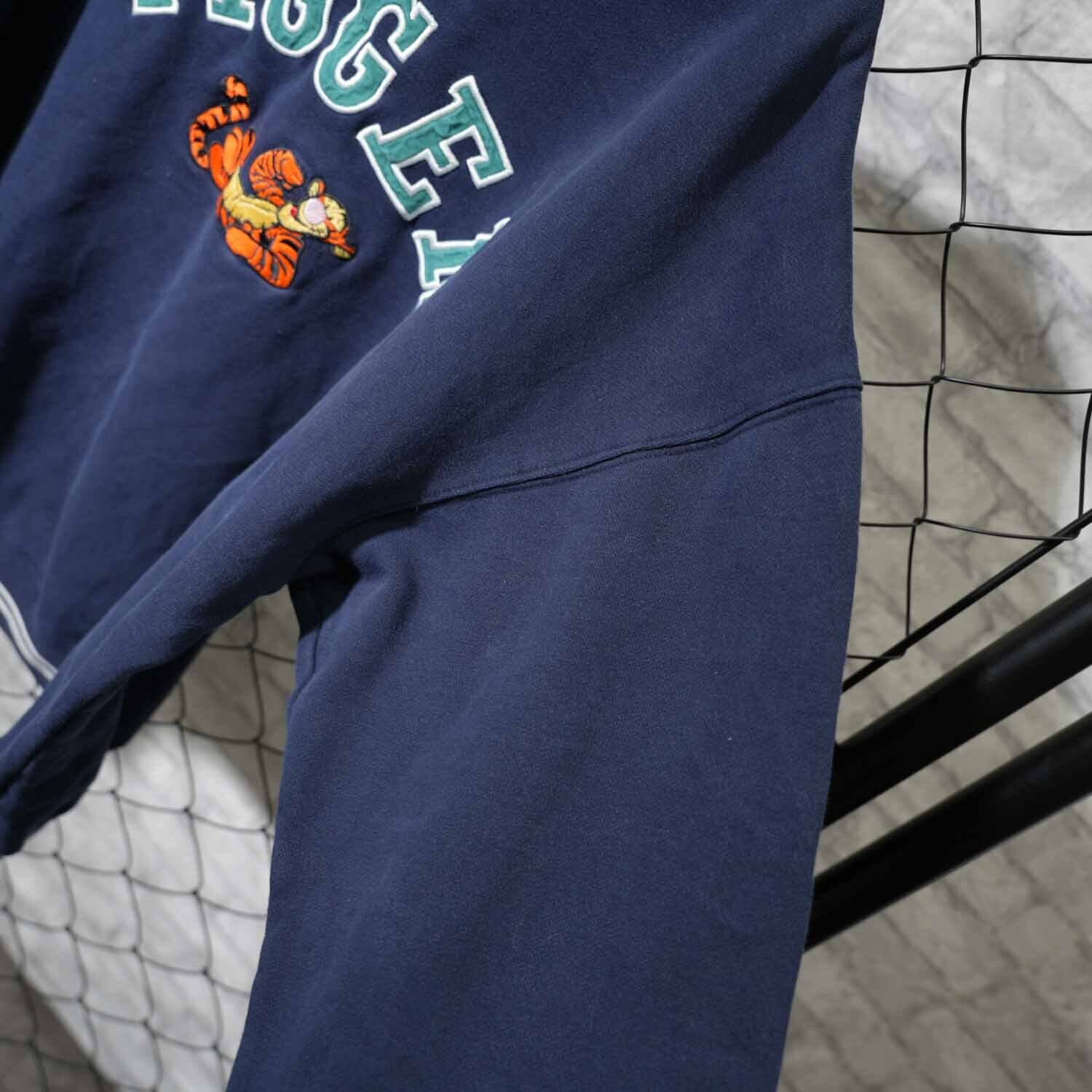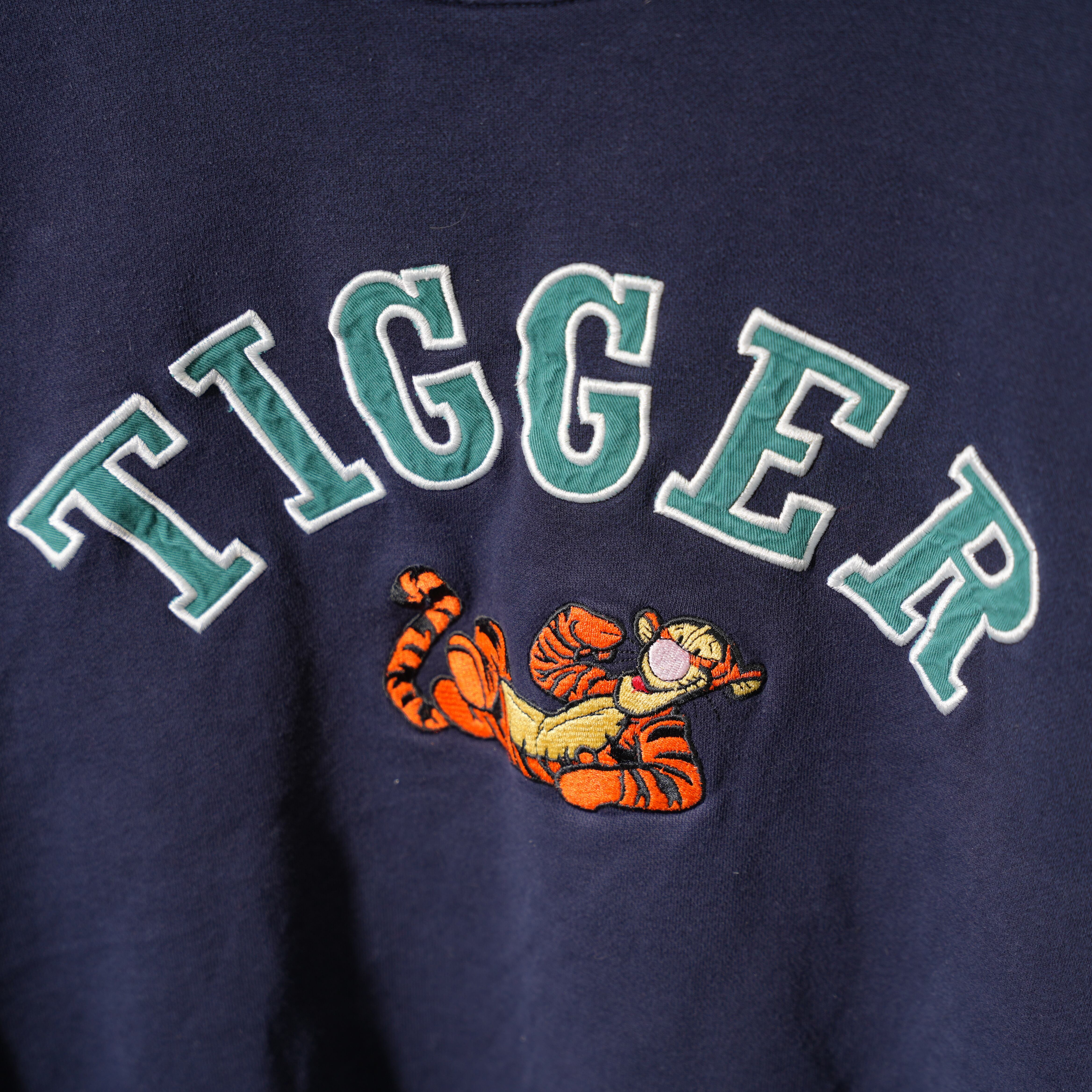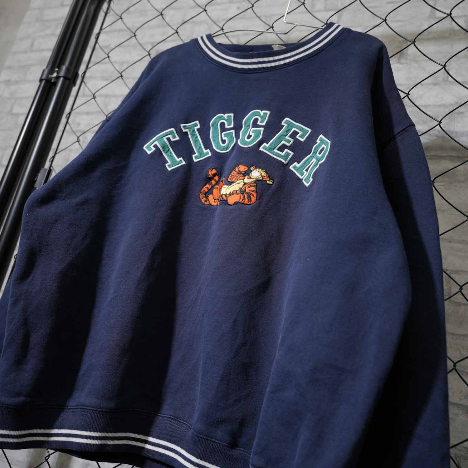 90s Disney TIGGER 刺繍スウェット 実測M~Lサイズ程度 The Disney Store ネイビー 90年代頃 キャラクター アメカジ 古着【furugi-1825】